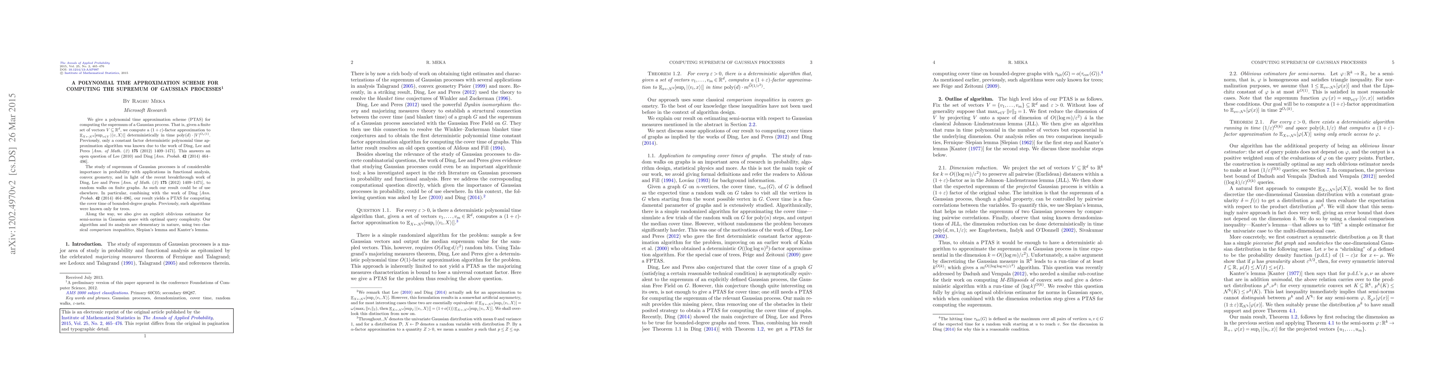 We give a polynomial time approximation scheme (PTAS) for computing the supremum of a Gaussian process. That is, given a finite set of vectors $V\subseteq\mathbb{R}^d$, we compute a $(1+\varepsilon)$-factor approximation to $\mathop {\mathbb{E}}_{X\leftarrow\mathcal{N}^d}[\sup_{v\in V}|\langle v,X\rangle|]$ deterministically in time $\operatorname {poly}(d)\cdot|V|^{O_{\varepsilon}(1)}$. Previously, only a constant factor deterministic polynomial time approximation algorithm was known due to the work of Ding, Lee and Peres [Ann. of Math. (2) 175 (2012) 1409-1471]. This answers an open question of Lee (2010) and Ding [Ann. Probab. 42 (2014) 464-496]. The study of supremum of Gaussian processes is of considerable importance in probability with applications in functional analysis, convex geometry, and in light of the recent breakthrough work of Ding, Lee and Peres [Ann. of Math. (2) 175 (2012) 1409-1471], to random walks on finite graphs. As such our result could be of use elsewhere. In particular, combining with the work of Ding [Ann. Probab. 42 (2014) 464-496], our result yields a PTAS for computing the cover time of bounded-degree graphs. Previously, such algorithms were known only for trees. Along the way, we also give an explicit oblivious estimator for semi-norms in Gaussian space with optimal query complexity. Our algorithm and its analysis are elementary in nature, using two classical comparison inequalities, Slepian's lemma and Kanter's lemma.