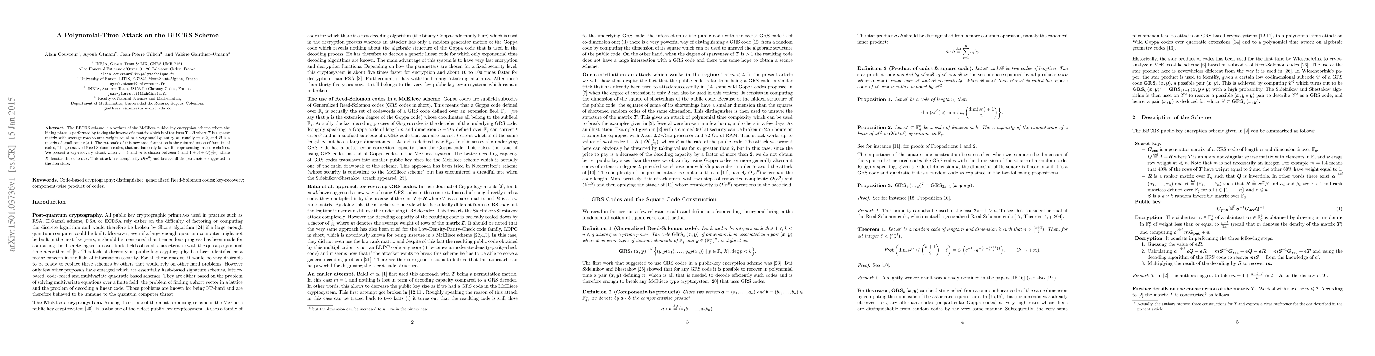 The BBCRS scheme is a variant of the McEliece public-key encryption scheme where the hiding phase is performed by taking the inverse of a matrix which is of the form $\mathbf{T} +\mathbf{R}$ where $\mathbf{T}$ is a sparse matrix with average row/column weight equal to a very small quantity $m$, usually $m < 2$, and $\mathbf{R}$ is a matrix of small rank $z\geqslant 1$. The rationale of this new transformation is the reintroduction of families of codes, like generalized Reed-Solomon codes, that are famously known for representing insecure choices. We present a key-recovery attack when $z = 1$ and $m$ is chosen between $1$ and $1 + R + O( \frac{1}{\sqrt{n}} )$ where $R$ denotes the code rate. This attack has complexity $O(n^6)$ and breaks all the parameters suggested in the literature.