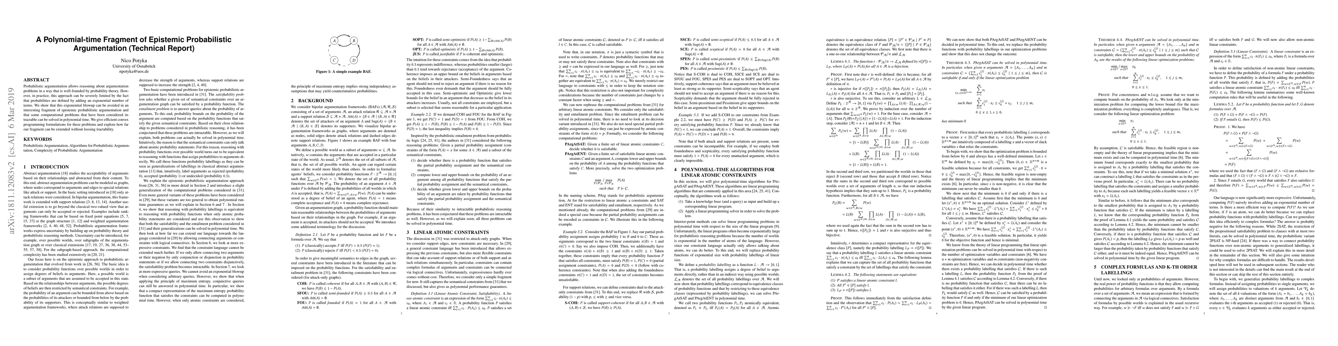This paper demonstrates a polynomial-time solution for a tractable fragment of epistemic probabilistic argumentation, avoiding the exponential complexity typical of such problems through efficient convex programming. The authors explore the limits of this fragment while maintaining computational feasibility.