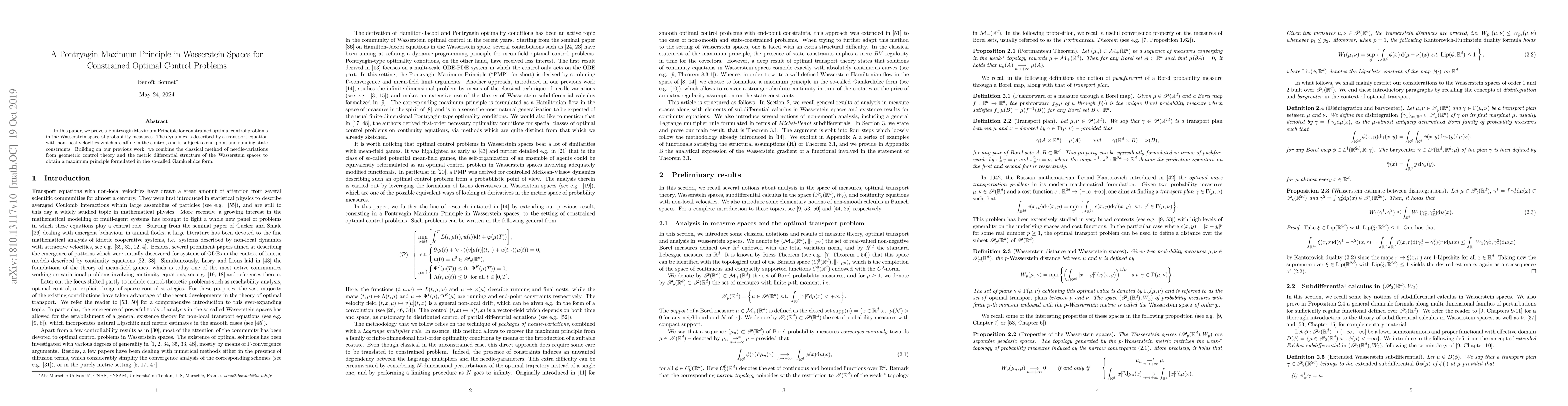 This paper establishes a Pontryagin Maximum Principle in Wasserstein spaces for constrained optimal control problems, providing a new framework for solving complex optimization problems with non-local dynamics and constraints.