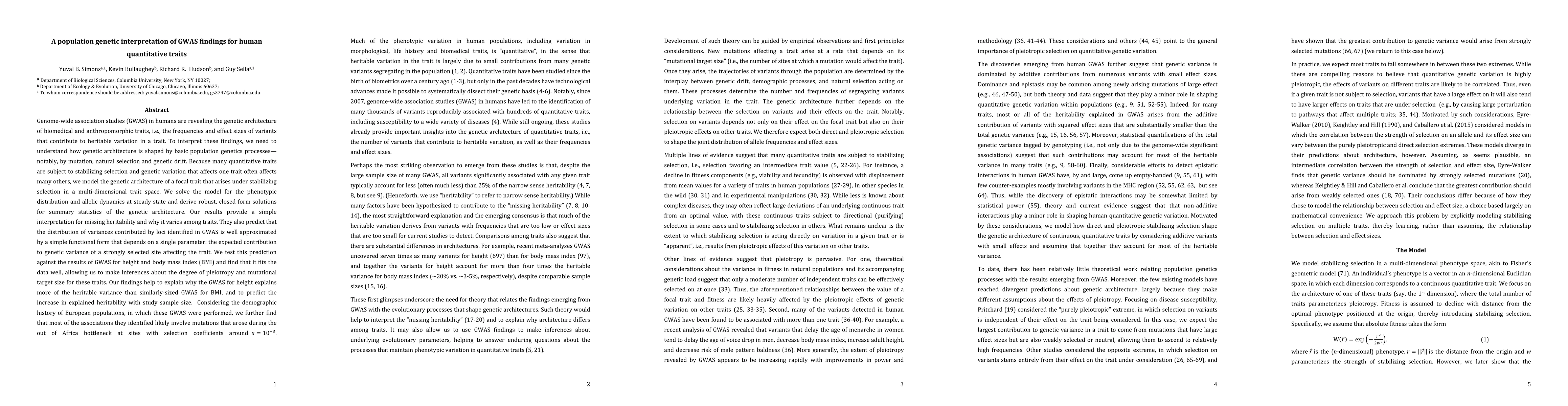 This paper models the genetic architecture of quantitative traits under stabilizing selection to interpret GWAS findings, showing that missing heritability varies by trait and that GWAS results for height and BMI fit a predicted distribution of variances. The study attributes differences in explained heritability to demographic history and selection coefficients.