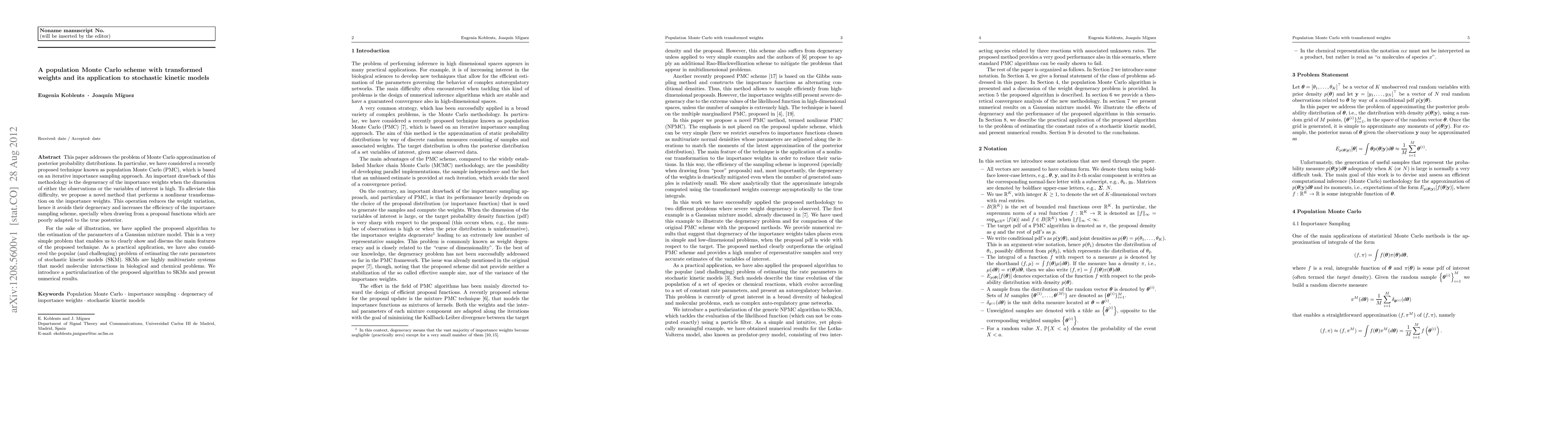 This paper addresses the problem of Monte Carlo approximation of posterior probability distributions. In particular, we have considered a recently proposed technique known as population Monte Carlo (PMC), which is based on an iterative importance sampling approach. An important drawback of this methodology is the degeneracy of the importance weights when the dimension of either the observations or the variables of interest is high. To alleviate this difficulty, we propose a novel method that performs a nonlinear transformation on the importance weights. This operation reduces the weight variation, hence it avoids their degeneracy and increases the efficiency of the importance sampling scheme, specially when drawing from a proposal functions which are poorly adapted to the true posterior. For the sake of illustration, we have applied the proposed algorithm to the estimation of the parameters of a Gaussian mixture model. This is a very simple problem that enables us to clearly show and discuss the main features of the proposed technique. As a practical application, we have also considered the popular (and challenging) problem of estimating the rate parameters of stochastic kinetic models (SKM). SKMs are highly multivariate systems that model molecular interactions in biological and chemical problems. We introduce a particularization of the proposed algorithm to SKMs and present numerical results.