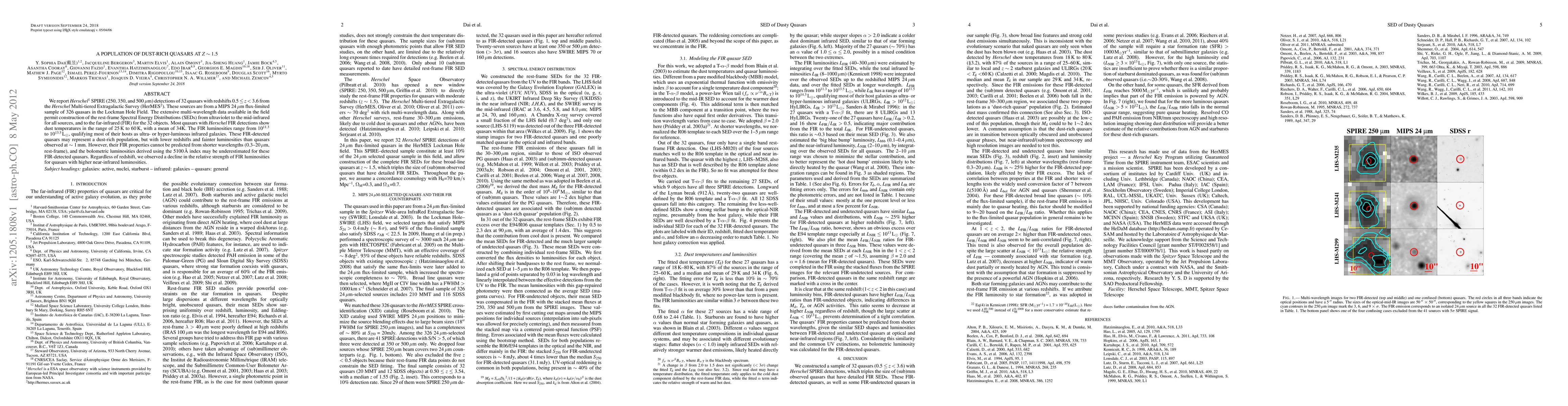 We report Herschel SPIRE (250, 350, and 500 micron) detections of 32 quasars with redshifts 0.5 < z < 3.6 from the Herschel Multi-tiered Extragalactic Survey. These sources are from a MIPS 24 micron flux-limited sample of 326 quasars in the Lockman Hole Field. The extensive multi-wavelength data available in the field permit construction of the rest-frame Spectral Energy Distributions (SEDs)from ultraviolet to the mid-infrared for all sources, and to the far-infrared (FIR) for the 32 objects. Most quasars with Herschel FIR detections show dust temperatures in the range of 25K to 60K, with a mean of 34K. The FIR luminosities range from 10^{11.3} to 10^{13.5} Lsun, qualifying most of their hosts as ultra- or hyper-luminous infrared galaxies. These FIR-detected quasars may represent a dust-rich population, but with lower redshifts and fainter luminosities than quasars observed at ~ 1 mm. However, their FIR properties cannot be predicted from shorter wavelengths (0.3--20 micron, rest-frame), and the bolometric luminosities derived using the 5100 A index may be underestimated for these FIR-detected quasars. Regardless of redshift, we observed a decline in the relative strength of FIR luminosities for quasars with higher near-infrared luminosities.