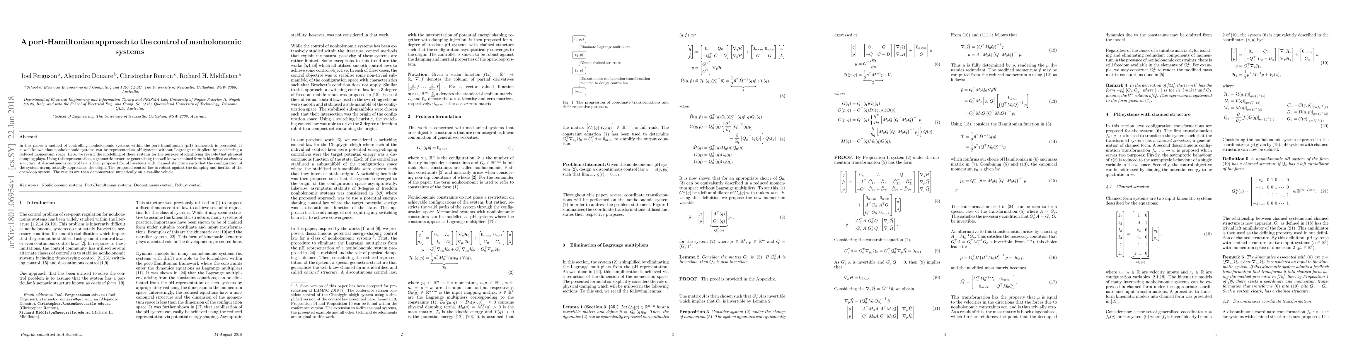 In this paper a method of controlling nonholonomic systems within the port-Hamiltonian (pH) framework is presented. It is well known that nonholonomic systems can be represented as pH systems without Lagrange multipliers by considering a reduced momentum space. Here, we revisit the modelling of these systems for the purpose of identifying the role that physical damping plays. Using this representation, a geometric structure generalising the well known chained form is identified as \textit{chained structure}. A discontinuous control law is then proposed for pH systems with chained structure such that the configuration of the system asymptotically approaches the origin. The proposed control law is robust against the damping and inertial of the open-loop system. The results are then demonstrated numerically on a car-like vehicle.