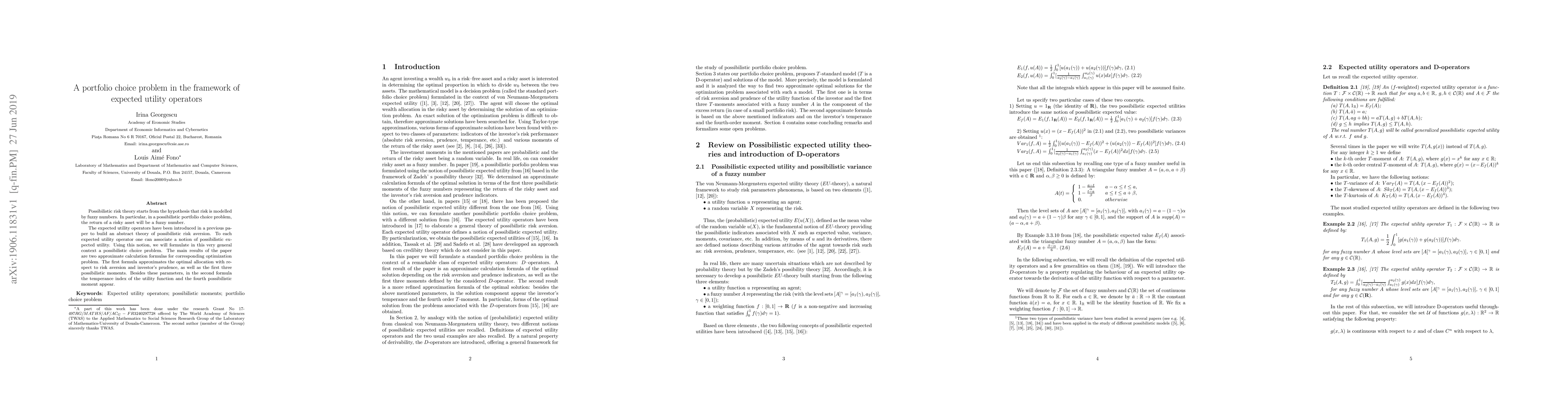 Possibilistic risk theory starts from the hypothesis that risk is modelled by fuzzy numbers. In particular, in a possibilistic portfolio choice problem, the return of a risky asset will be a fuzzy number. The expected utility operators have been introduced in a previous paper to build an abstract theory of possibilistic risk aversion. To each expected utility operator one can associate a notion of possibilistic expected utility. Using this notion, we will formulate in this very general context a possibilistic choice problem. The main results of the paper are two approximate calculation formulas for corresponding optimization problem. The first formula approximates the optimal allocation with respect to risk aversion and investor's prudence, as well as the first three possibilistic moments. Besides these parameters, in the second formula the temperance index of the utility function and the fourth possibilistic moment appear.