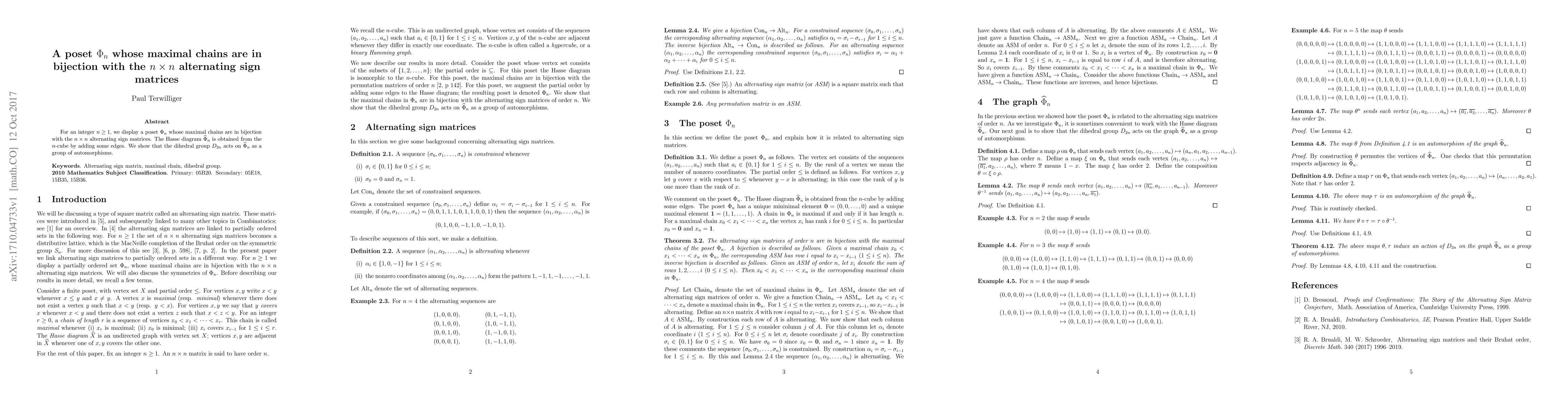 Researchers created a poset ε_n whose maximal chains correspond to n x n alternating sign matrices, and found that the dihedral group D_{2n} acts on this structure as an automorphism.