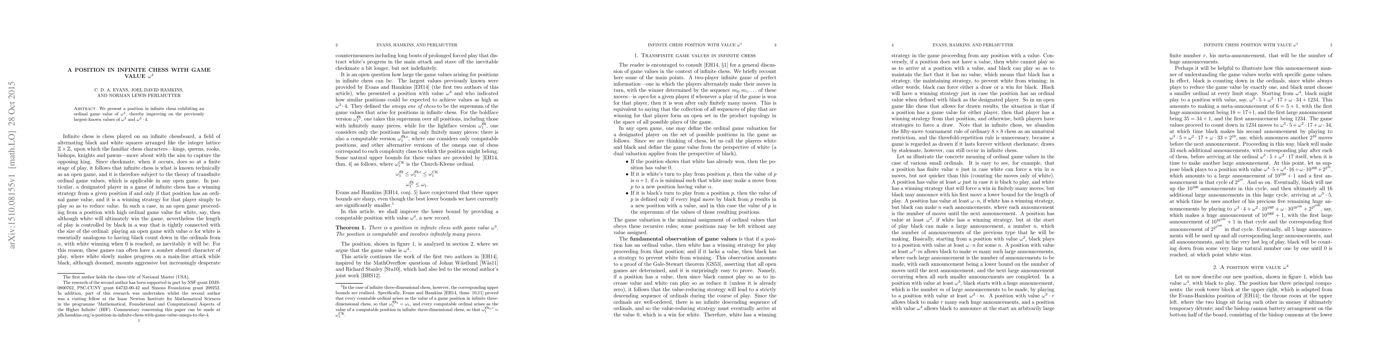 This paper introduces a complex position in infinite chess with an ordinal game value of $\omega^4$, surpassing previous records of $\omega^3$ and $\omega^3\cdot 4$. It demonstrates advanced mathematical strategies in the game's infinite dimensions.