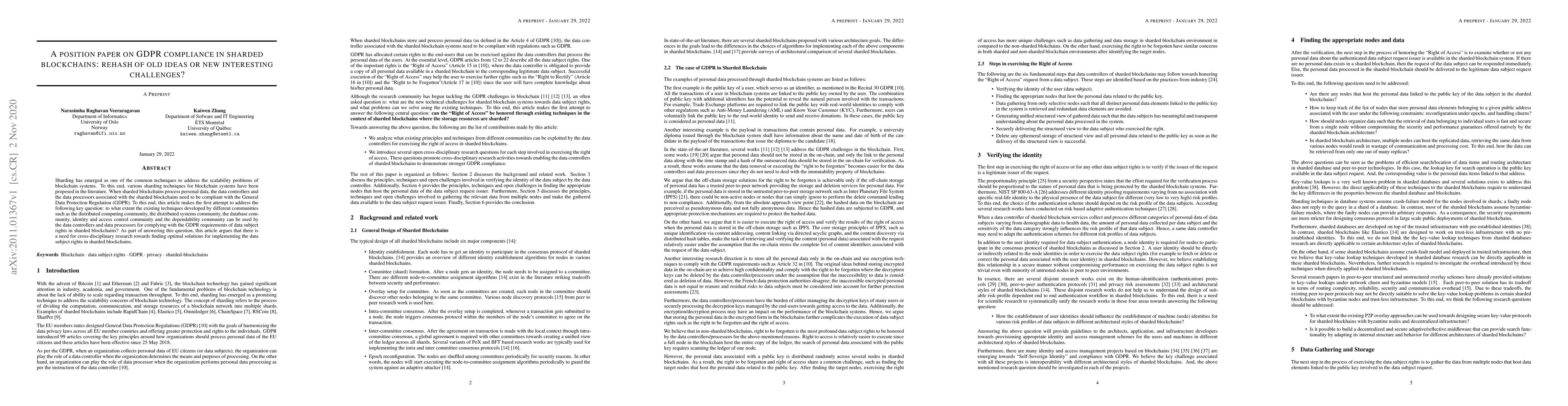 This paper explores the extent to which existing techniques from various fields can aid in GDPR compliance for sharded blockchains, highlighting the necessity for cross-disciplinary research to implement data subject rights effectively. It argues that current methods may not suffice, necessitating innovative solutions.