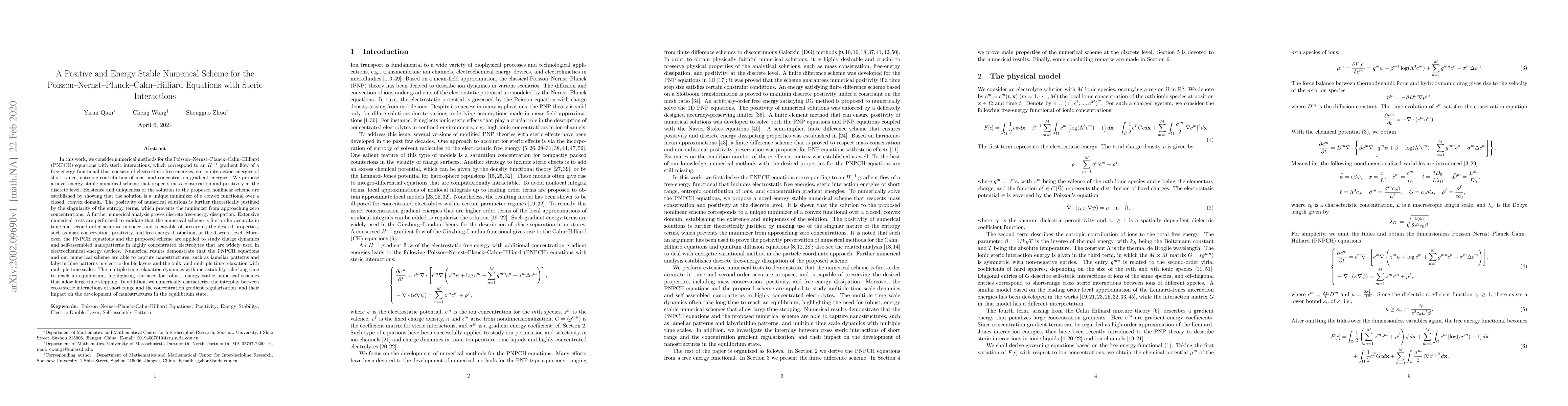A novel energy-stable numerical scheme is proposed for solving the Poisson-Nernst-Planck-Cahn-Hilliard equations with steric interactions, which can capture nanostructures and multiple time scales in electrochemical systems.