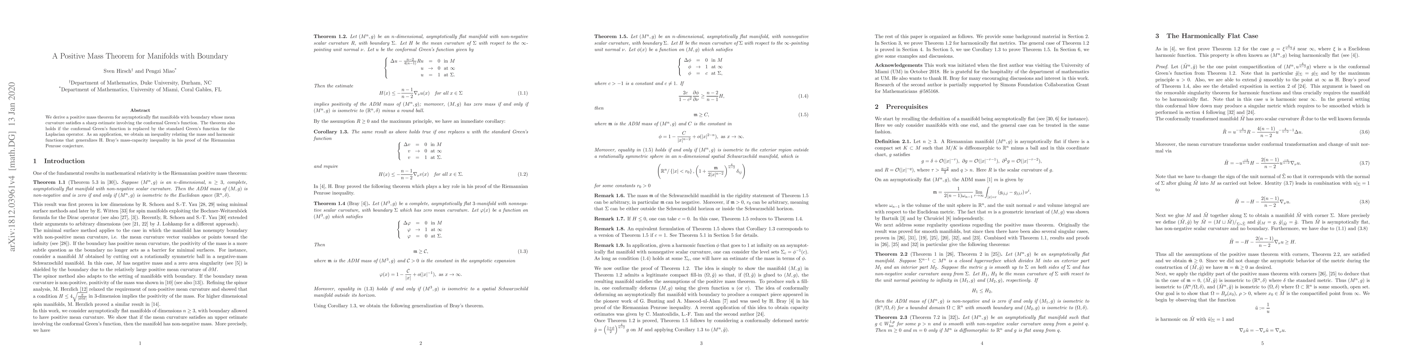 This paper establishes a positive mass theorem for asymptotically flat manifolds with boundary, proving that the mass is positively related to the mean curvature and conformal Green's functions. It also extends H. Bray's mass-capacity inequality, providing a new generalization in the context of Riemannian Penrose conjecture.