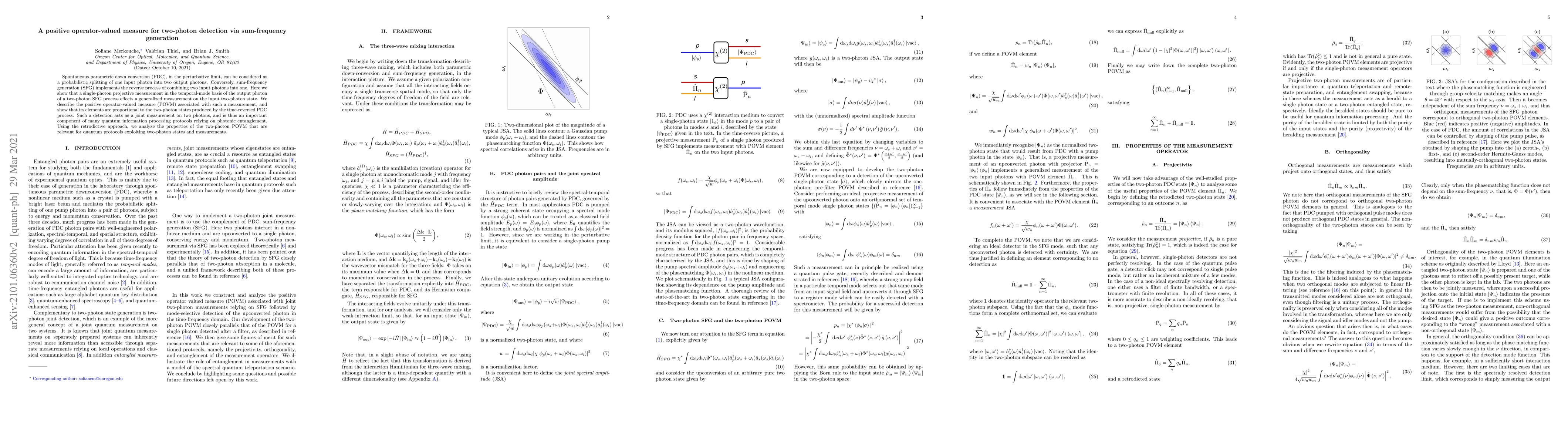 This paper introduces a positive-operator-valued measure (POVM) for detecting two-photon states via sum-frequency generation, showing that it corresponds to the time-reversed process of spontaneous parametric down-conversion. The analysis highlights the significance of such measurements in quantum information protocols utilizing photonic entanglement.