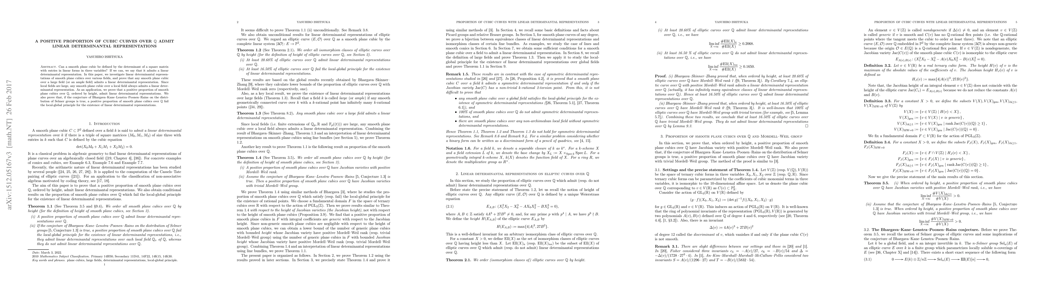 This paper investigates linear determinantal representations of smooth plane cubics over various fields, proving that a significant proportion of smooth plane cubics over Q, when ordered by height, admit such representations. It also discusses implications if the Bhargava-Kane-Lenstra-Poonen-Rains conjecture holds.