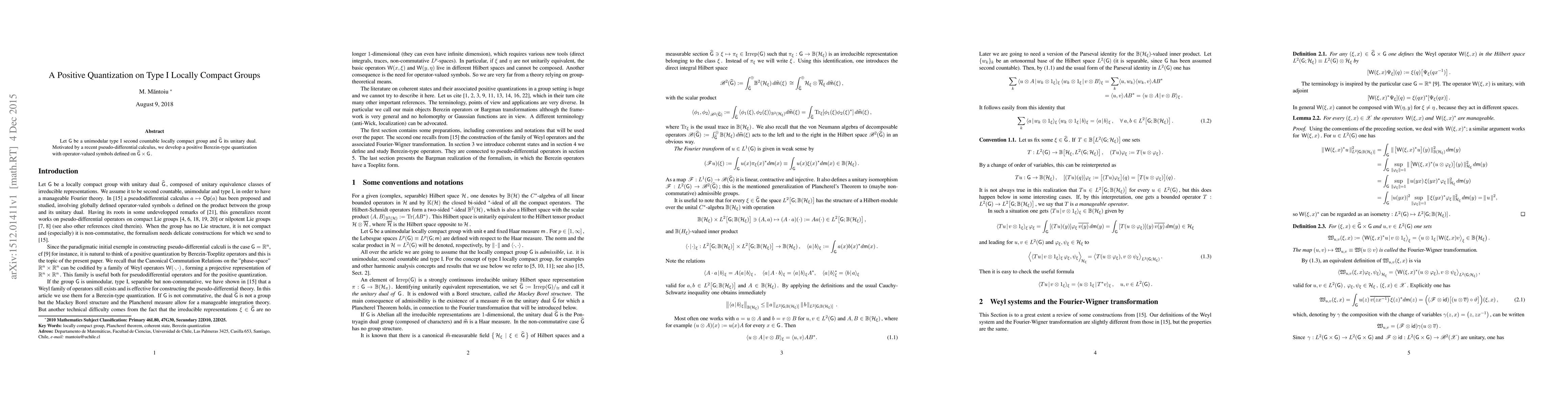 Let $\G$ be a unimodular type I second countable locally compact group and $\wG$ its unitary dual. Motivated by a recent pseudo-differential calculus, we develop a positive Berezin-type quantization with operator-valued symbols defined on $\wG\times\G$.