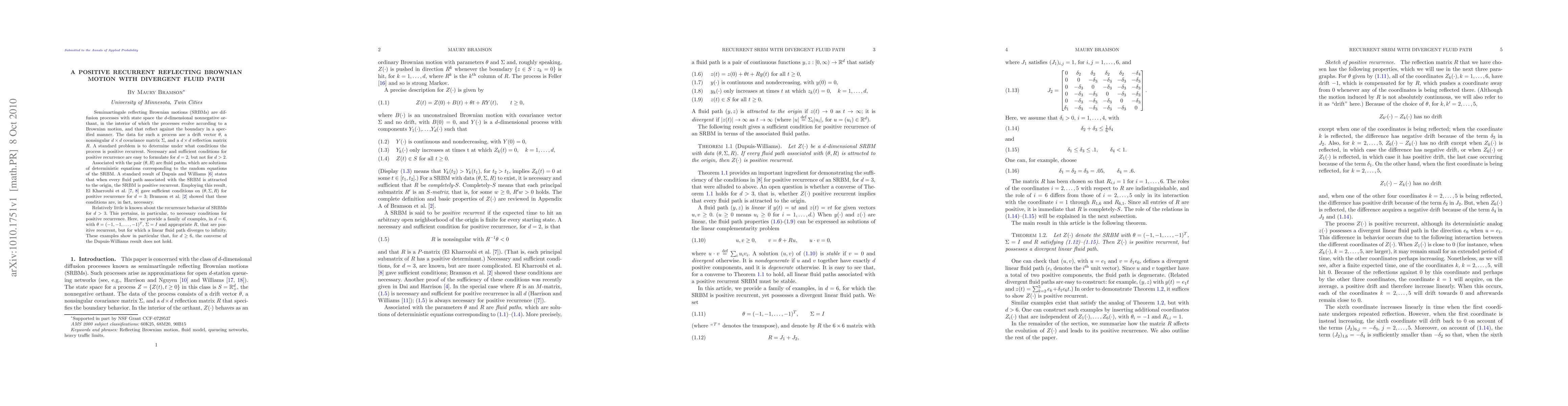 Researchers found that a specific family of Semimartingale Reflecting Brownian Motions with divergent fluid paths in d=6 dimensions show positive recurrence, challenging the converse of a well-known result about positive recurrence.