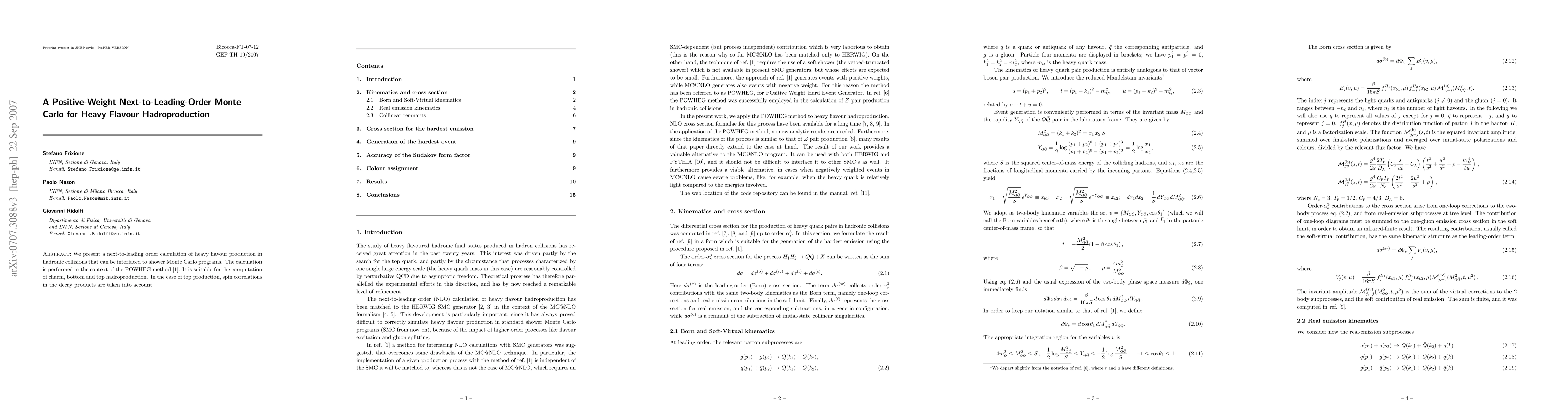 This paper introduces a next-to-leading order Monte Carlo method for heavy flavour hadroproduction, compatible with shower Monte Carlo programs, using the POWHEG method, and applicable to charm, bottom, and top quark production, including spin correlations for top quarks.