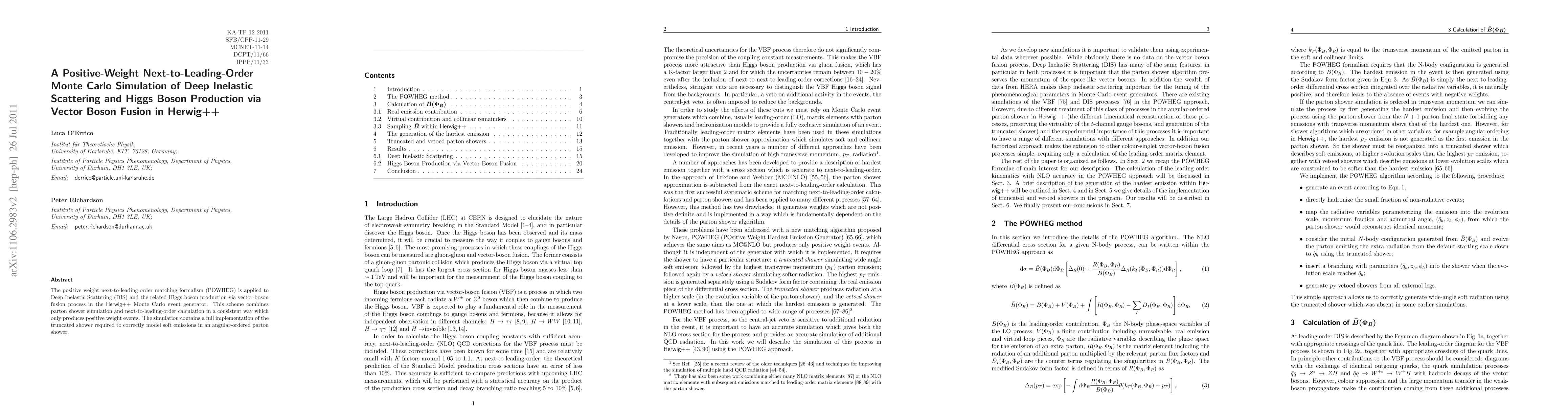 This paper applies the positive-weight next-to-leading-order matching formalism (POWHEG) in Herwig++ to simulate Deep Inelastic Scattering and Higgs boson production via vector boson fusion, combining parton shower simulation and next-to-leading-order calculations to produce only positive weight events. The simulation includes a full implementation of the truncated shower for accurate soft emissions modeling.