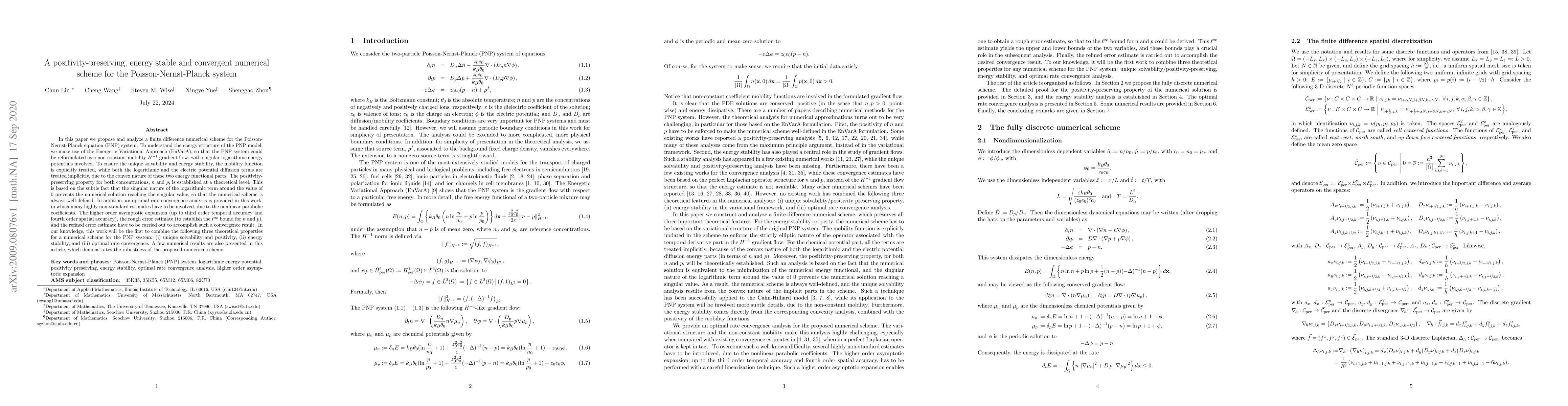 This paper proposes a finite difference numerical scheme for the Poisson-Nernst-Planck system, ensuring unique solvability, energy stability, and optimal rate convergence. The scheme preserves positivity for concentrations and employs the Energetic Variational Approach to handle singular logarithmic energy potentials.