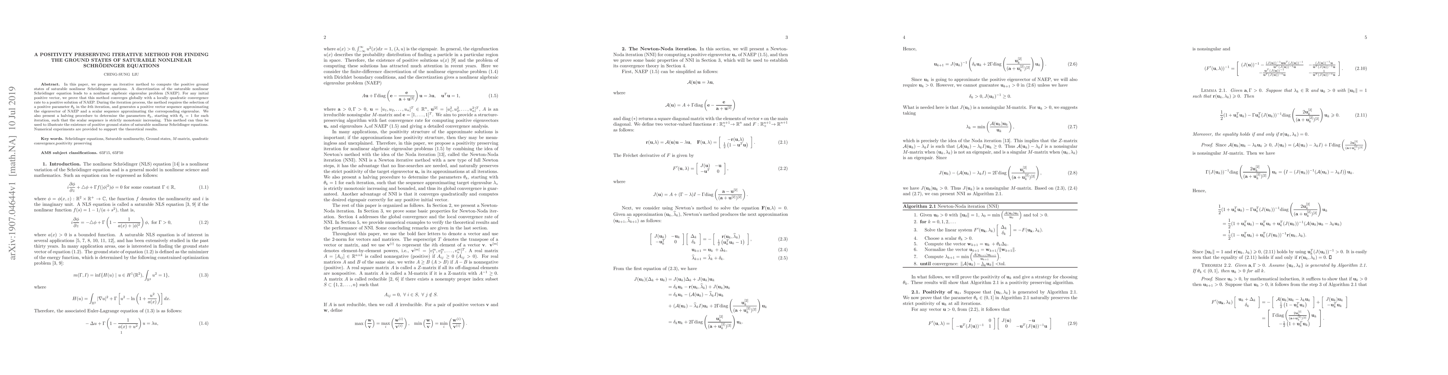 This paper proposes a positivity-preserving iterative method for solving saturable nonlinear Schrödinger equations, proving global convergence to positive ground states with locally quadratic rate. The method involves selecting a positive parameter and uses a halving procedure to ensure monotonicity, supported by numerical experiments.