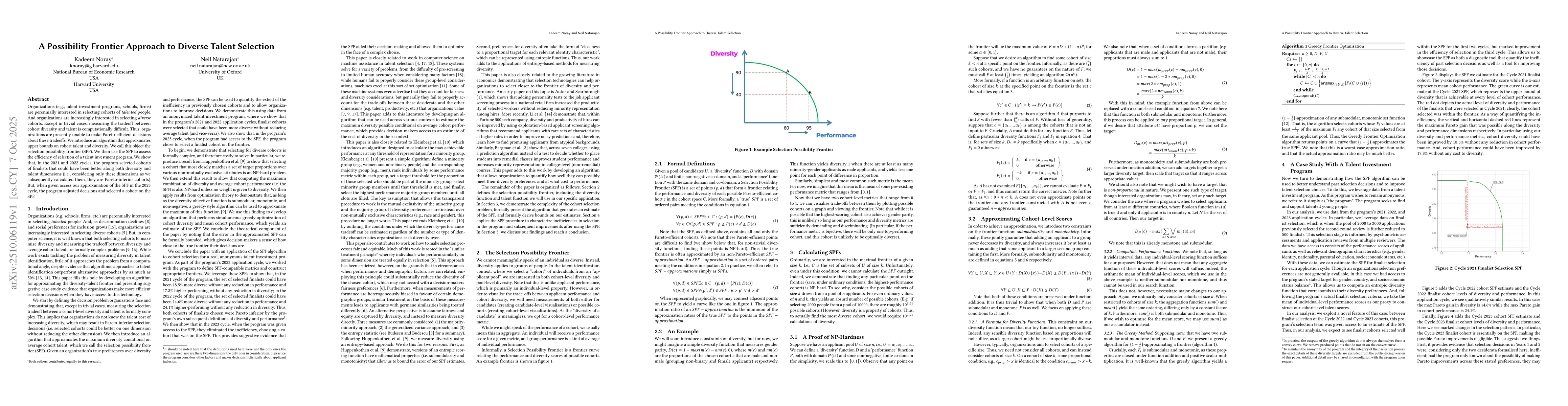 This research addresses the computational challenge of balancing diversity and talent in cohort selection, offering a practical framework for organizations to make more efficient and equitable decisions. It has implications for talent management, algorithmic fairness, and resource allocation in various sectors.