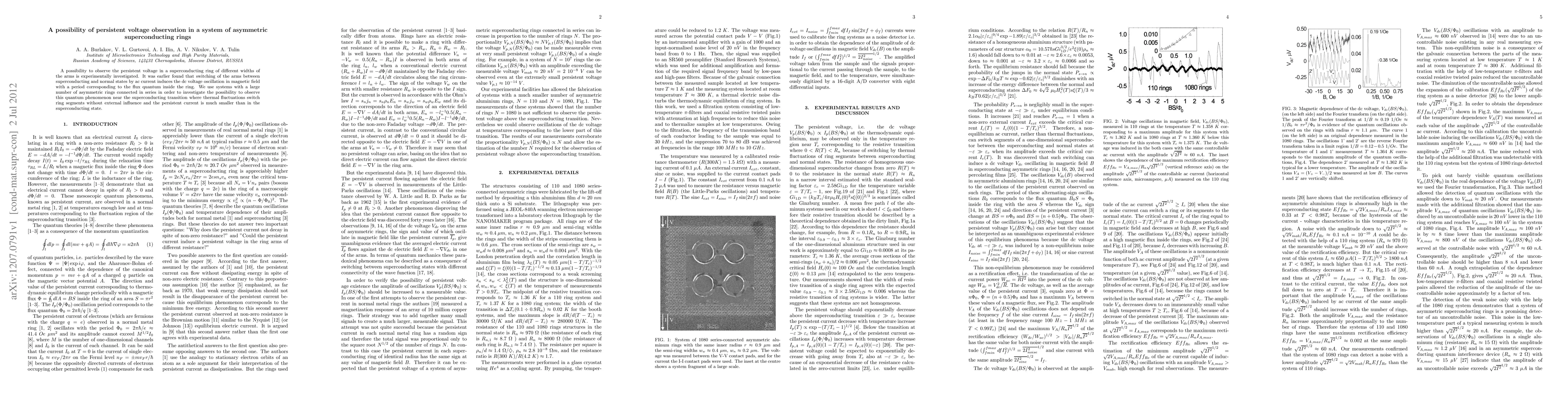 This research investigates the potential to observe persistent voltage in asymmetric superconducting rings, focusing on systems where thermal fluctuations induce dc voltage oscillations due to flux quantum effects near the superconducting transition. The study uses series-connected rings to explore this quantum phenomenon.