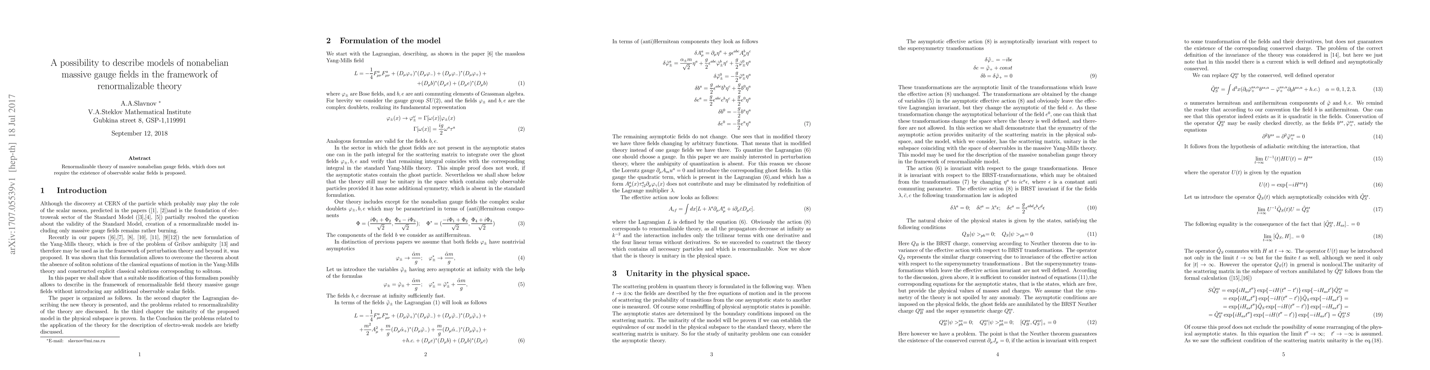Renormalizable theory of massive nonabelian gauge fields, which does not require the existence of observable scalar fields is proposed.