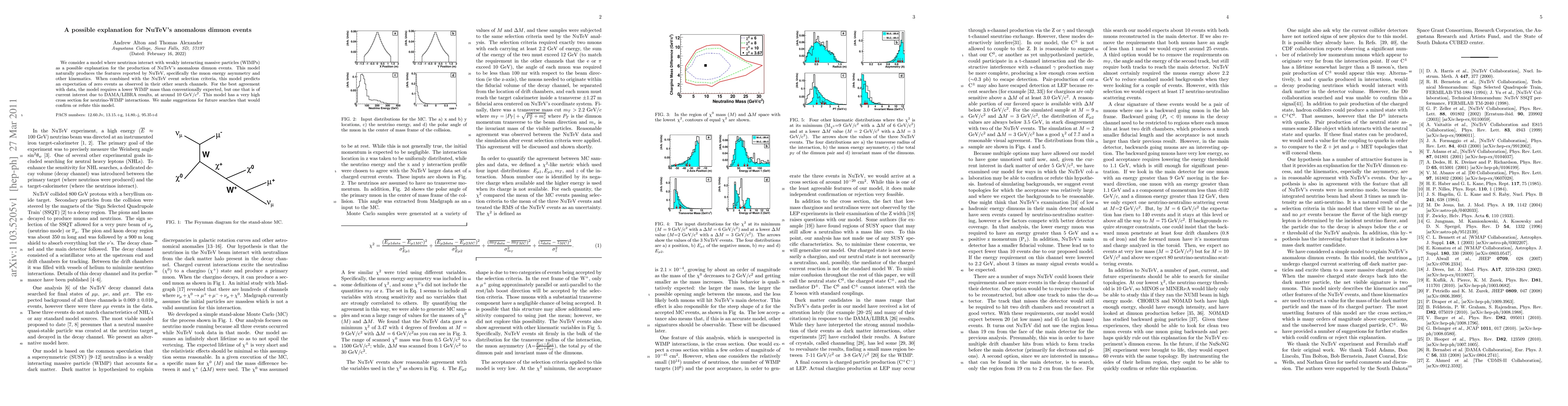 We consider a model where neutrinos interact with weakly interacting massive particles (WIMPs) as a possible explanation for the production of NuTeV's anomalous dimuon events. This model naturally produces the features reported by NuTeV, specifically the muon energy asymmetry and other kinematics. When combined with the NuTeV event selection criteria, this model predicts an expectation of zero events as observed in their other search channels. For the best agreement with data, the model requires a lower WIMP mass than conventionally expected, but one that is of current interest due to DAMA/LIBRA results, at around 10 GeV$/c^2$. This model has a very high cross section for neutrino-WIMP interactions. We make suggestions for future searches that would confirm or refute this model.