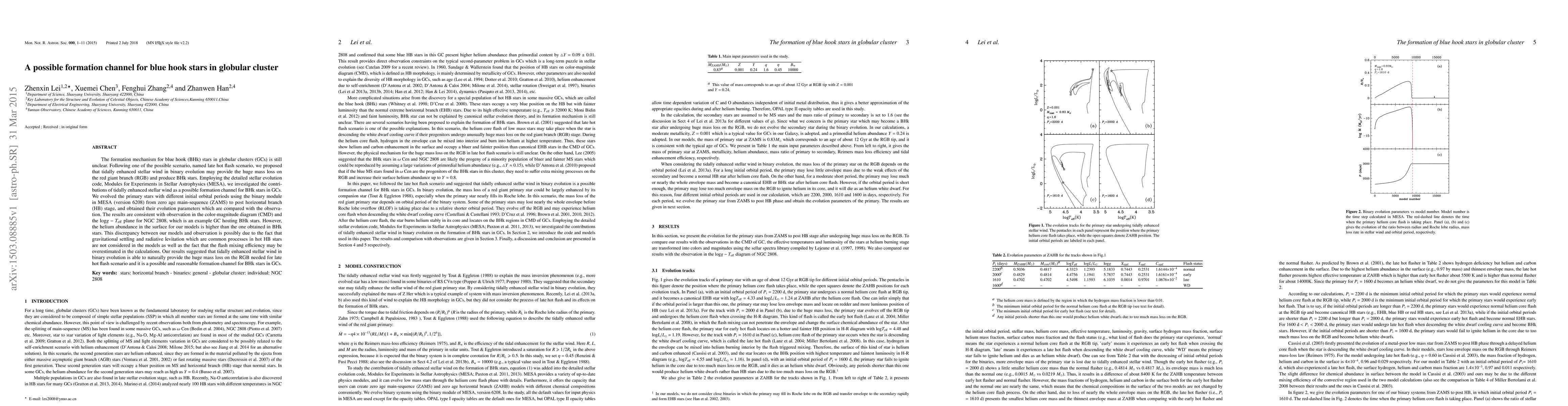 The formation mechanism for blue hook (BHk) stars in globular clusters (GCs) is still unclear. Following one of the possible scenario, named late hot flash scenario, we proposed that tidally enhanced stellar wind in binary evolution may provide the huge mass loss on the red giant branch (RGB) and produce BHk stars. Employing the detailed stellar evolution code, Modules for Experiments in Stellar Astrophysics (MESA), we investigated the contributions of tidally enhanced stellar wind as a possible formation channel for BHk stars in GCs. We evolved the primary stars with different initial orbital periods using the binary module in MESA (version 6208) from zero age main-sequence (ZAMS) to post horizontal branch (HB) stage, and obtained their evolution parameters which are compared with the observation. The results are consistent with observation in the color-magnitude diagram (CMD) and the logg-Teff plane for NGC 2808, which is an example GC hosting BHk stars. However, the helium abundance in the surface for our models is higher than the one obtained in BHk stars. This discrepancy between our models and observation is possibly due to the fact that gravitational settling and radiative levitation which are common processes in hot HB stars are not considered in the models as well as the fact that the flash mixing efficiency may be overestimated in the calculations. Our results suggested that tidally enhanced stellar wind in binary evolution is able to naturally provide the huge mass loss on the RGB needed for late hot flash scenario and it is a possible and reasonable formation channel for BHk stars in GCs.