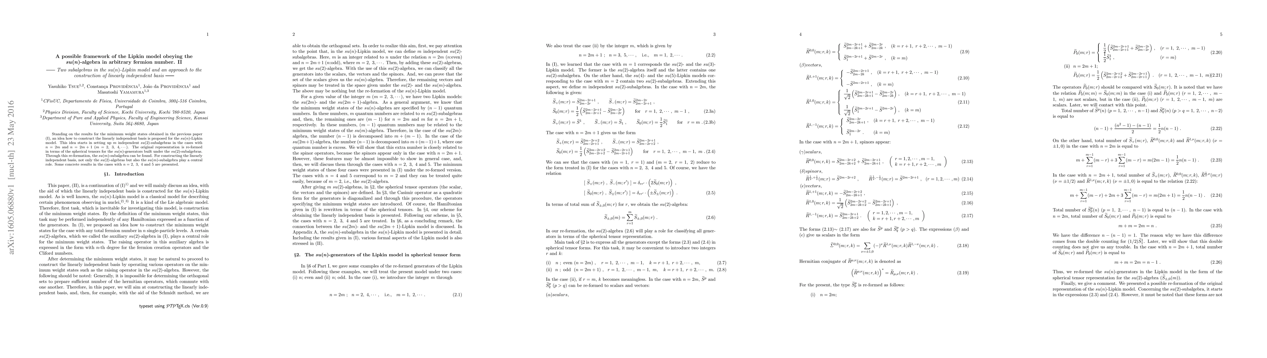 Standing on the results for the minimum weight states obtained in the previous paper (I), an idea how to construct the linearly independent basis is proposed for the su(n)-Lipkin model. This idea starts in setting up m independent su(2)-subalgebras in the cases with n=2m and n=2m+1 (m=2,3,4,...). The original representation is re-formed in terms of the spherical tensors for the su(n)-generators built under the su(2)-subalgebras. Through this re-formation, the su(m)-subalgebra can be found. For constructing the linearly independent basis, not only the su(2)-algebras but also the su(m)-subalgebra play a central role. Some concrete results in the cases with n=2, 3, 4 and 5 are presented.