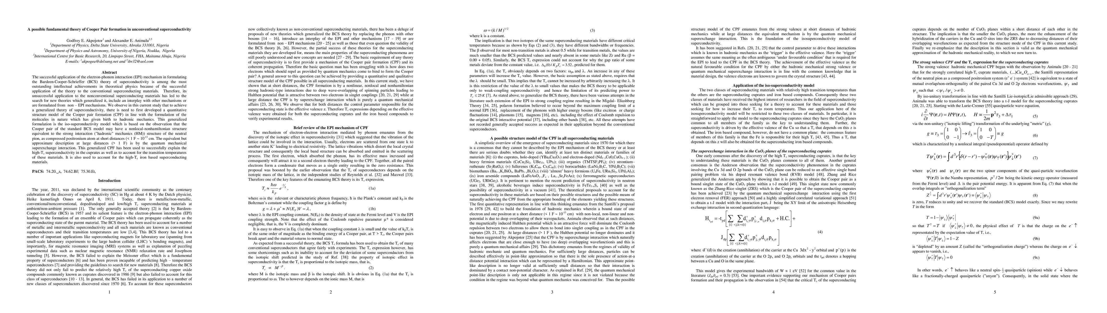 The successful application of the electron-phonon interaction (EPI) mechanism in formulating the Bardeen-Cooper-Schrieffer (BCS) theory of superconductivity is among the most outstanding intellectual achievements in theoretical physics because of the successful application of the theory to the conventional superconducting materials. Therefore, its unsuccessful application to the nonconventional superconducting materials has led to the search for new theories which generalized it, include an interplay with other mechanisms or are formulated from non - EPI mechanisms. We observe in this current study that to achieve a generalized theory of superconductivity, there is need to first developed a quantitative structure model of the Cooper pair formation (CPF) in line with the formulation of the molecules in nature which has given birth to hadronic mechanics. This generalized formulation is the iso-superonductivity model which is based on the observation that the Cooper pair of the standard BCS model may have a nonlocal-nonhamiltonian structure equivalent to the strong interaction ("hadronic" mechanics (HM)) structure of the neutral pion, as compressed positronium atom at short distances (< 1 F \sim 10-13 cm. The equivalent but approximate description at large distances (> 1 F) is by the quantum mechanical superexchange interaction. This generalized CPF has been used to successfully explain the high-Tc superconductivity in the cuprates as well as to account for the transition temperatures of these materials. It is also used to account for the high-Tc iron based superconducting materials.