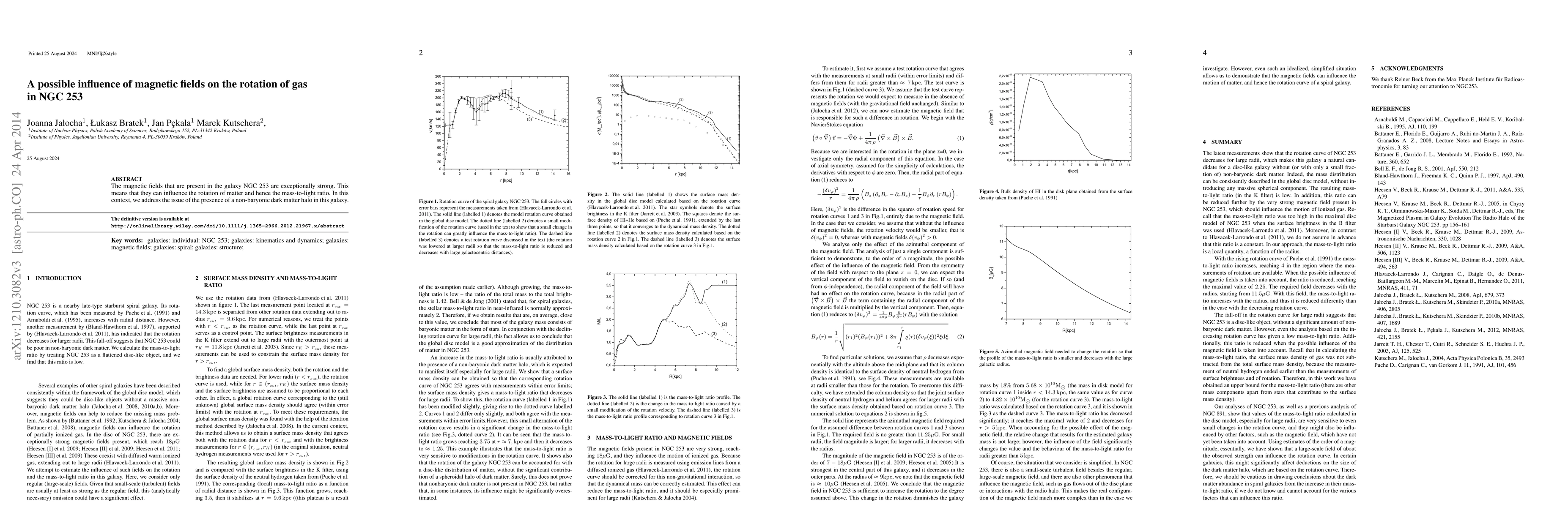 The magnetic fields that are present in the galaxy NGC 253 are exceptionally strong. This means that they can influence the rotation of matter and hence the mass-to-light ratio. In this context, we address the issue of the presence of a non-baryonic dark matter halo in this galaxy.