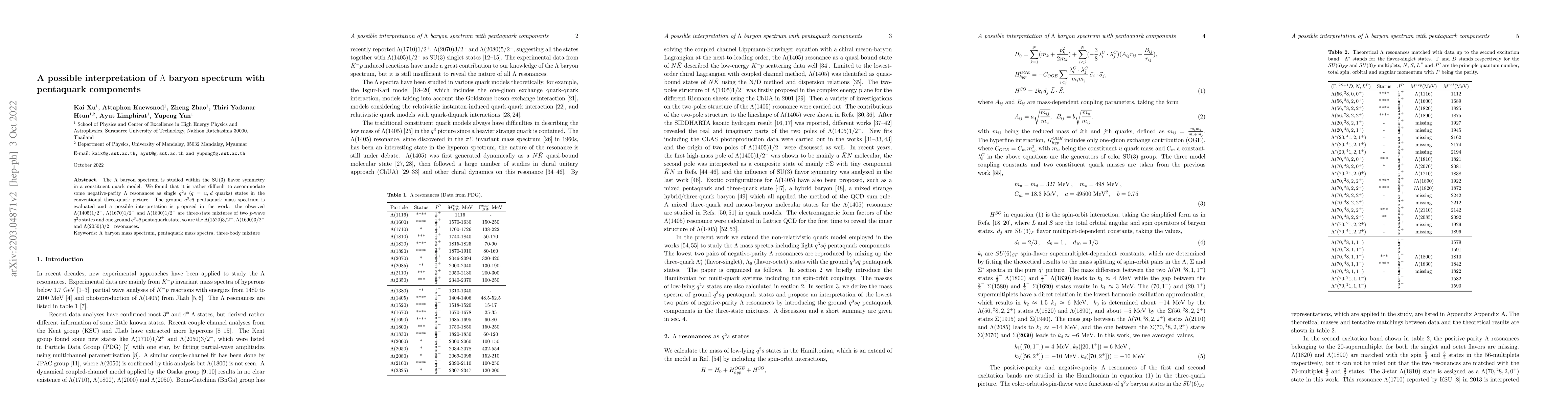 This study explores the $\Lambda$ baryon spectrum using an SU(3) flavor symmetry in a constituent quark model, proposing that certain negative-parity resonances may be better explained as mixtures involving pentaquark components rather than conventional three-quark states.