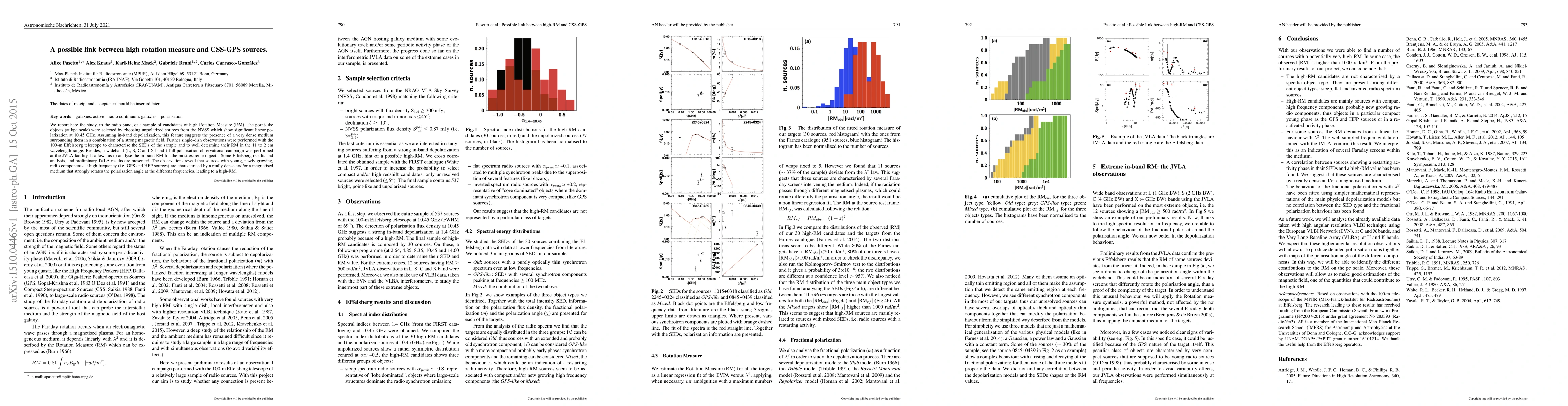 We report here the study, in the radio band, of a sample of candidates of high Rotation Measure (RM). The point-like objects (at kpc scale) were selected by choosing unpolarised sources from the NVSS which show significant linear polarisation at 10.45 GHz. Assuming in-band depolarisation, this feature suggests the presence of a very dense medium surrounding them in a combination of a strong magnetic field. Further single-dish observations were performed with the 100-m Effelsberg telescope to characterise the SEDs of the sample and to well determine their RM in the 11 to 2 cm wavelength range. Besides, a wideband (L, S, C and X band ) full polarisation observational campaign was performed at the JVLA facility. It allows us to analyse the in-band RM for the most extreme objects. Some Effelsberg results and analysis, and preliminary JVLA results are presented. The observations reveal that sources with young, newly growing, radio components at high frequency (i.e. GPS and HFP sources) are characterised by a really dense and/or a magnetised medium that strongly rotates the polarisation angle at the different frequencies, leading to a high-RM.