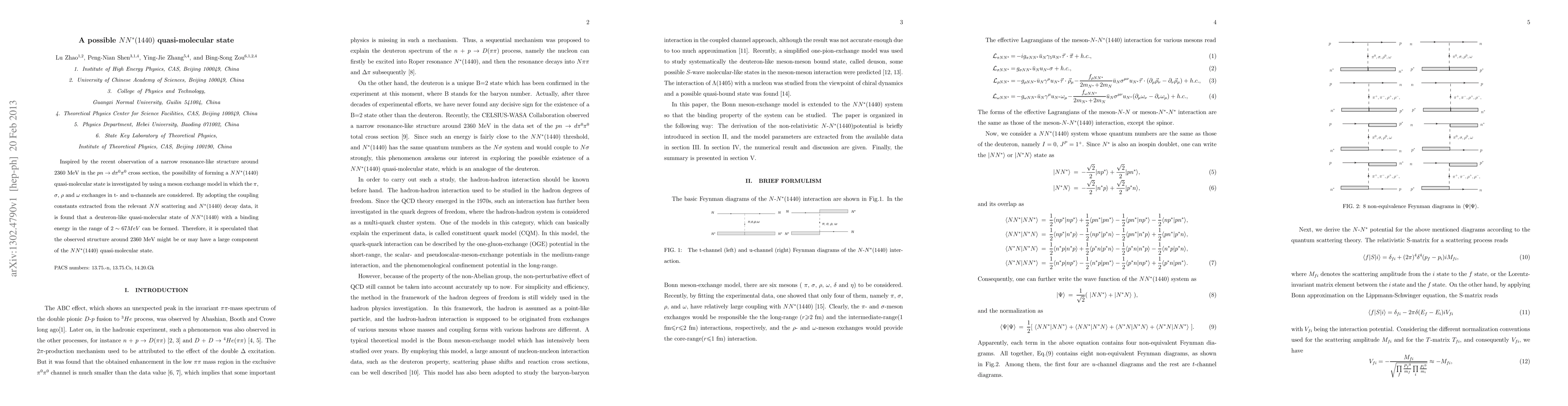 Researchers propose the existence of a NN*(1440) quasi-molecular state with binding energies between 2-67 MeV, suggesting a possible explanation for a narrow resonance-like structure observed in p+n to d + π˜ + π˜ cross section.