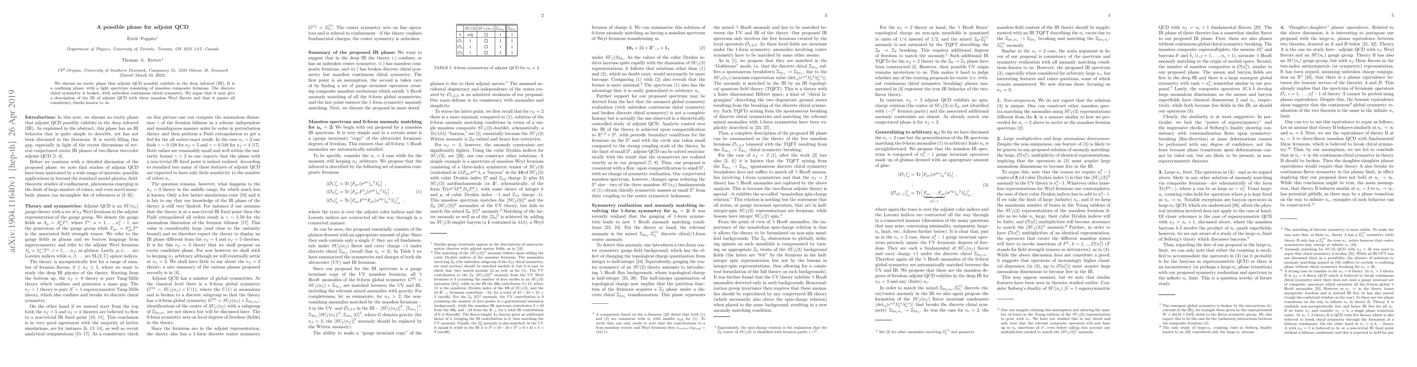 The paper proposes an exotic, confining phase in adjoint QCD's deep infrared region, characterized by massless composite fermions and unbroken continuous chiral symmetry, potentially describing the IR behavior of adjoint QCD with three massless Weyl flavors.