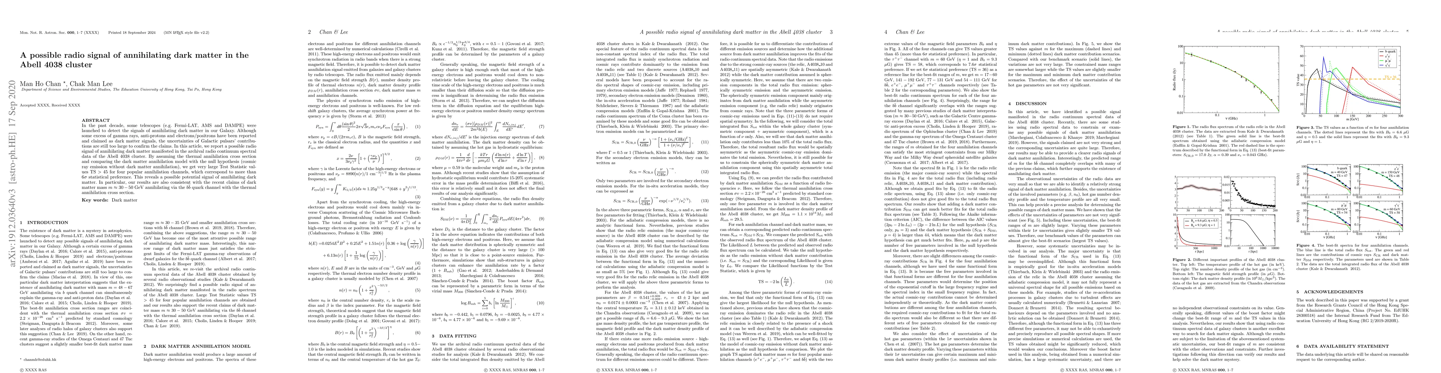 Researchers detect possible radio signal of annihilating dark matter in Abell 4038 cluster, providing strong evidence for its existence with a statistical preference of more than 6.5 sigma.