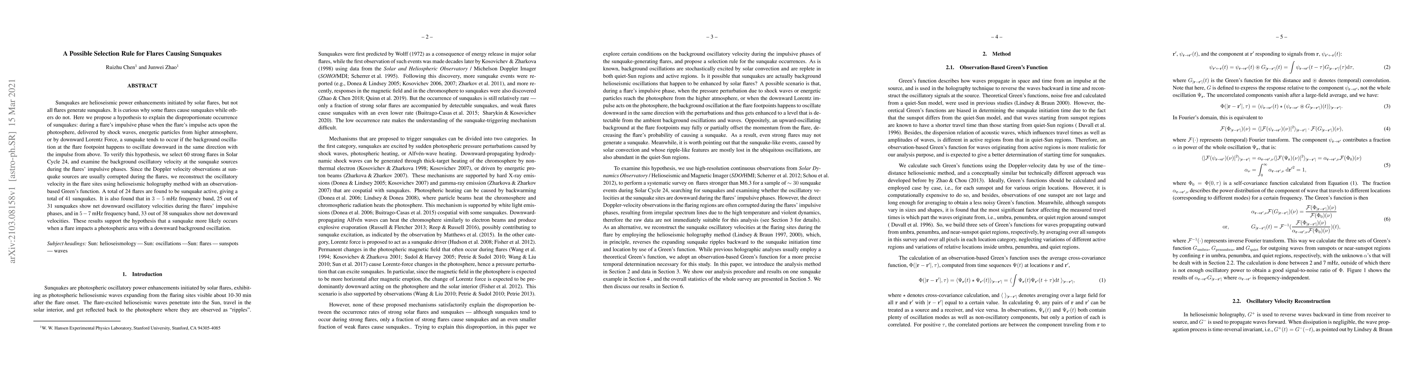 A study found that sunquakes more likely occur when a solar flare impacts a photospheric area with a downward background oscillation, supporting a new hypothesis for the generation of sunquakes.