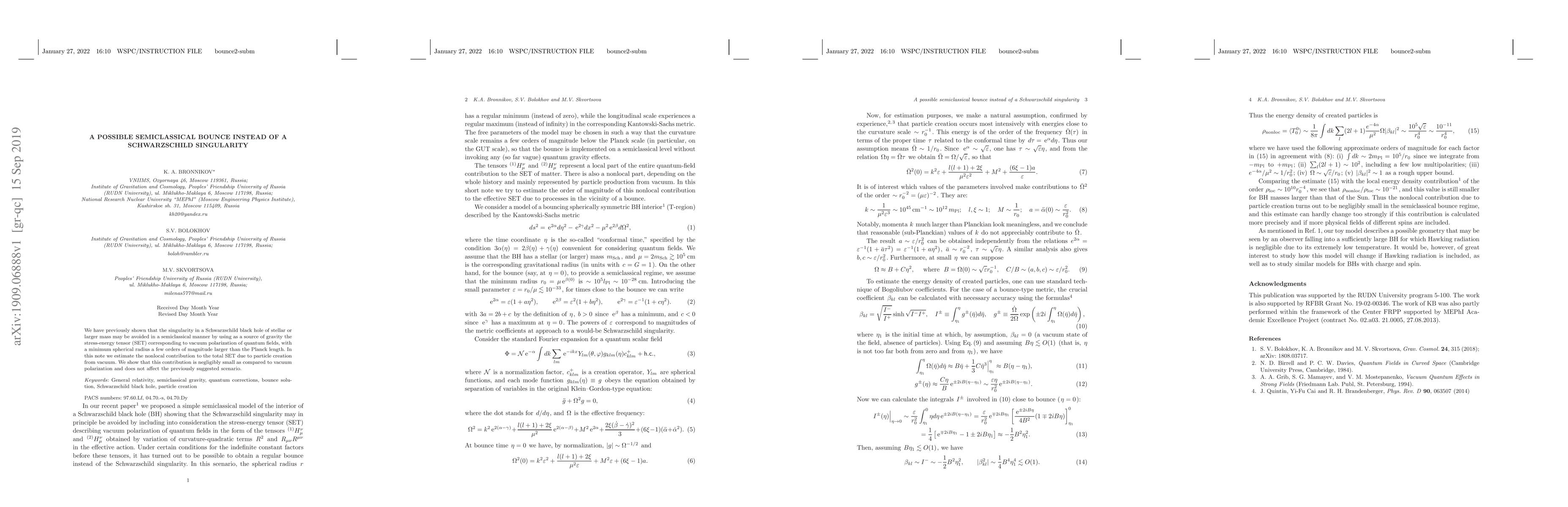 We have previously shown that the singularity in a Schwarzschild black hole of stellar or larger mass may be avoided in a semiclassical manner by using as a source of gravity the stress-energy tensor (SET) corresponding to vacuum polarization of quantum fields, with a minimum spherical radius a few orders of magnitude larger than the Planck length. In this note we estimate the nonlocal contribution to the total SET due to particle creation from vacuum. We show that this contribution is negligibly small as compared to vacuum polarization and does not affect the previously suggested scenario.