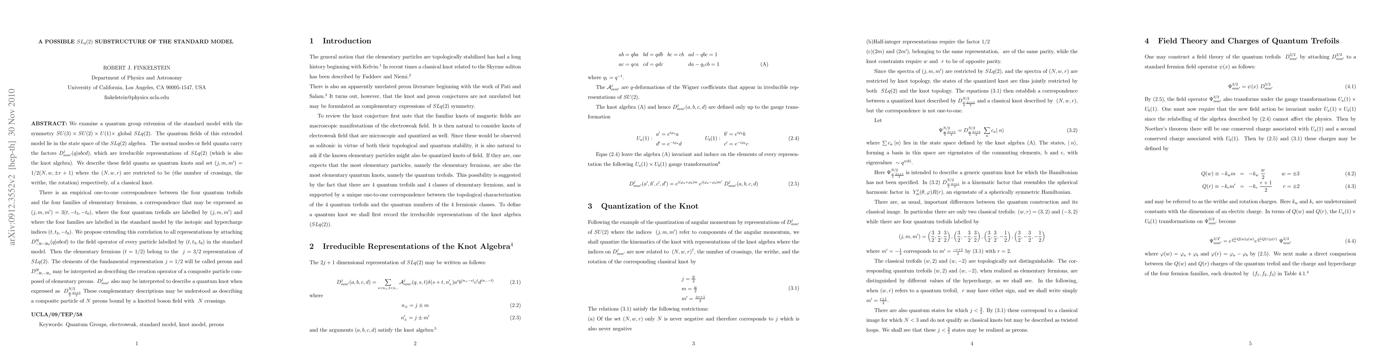 This paper explores a quantum group extension of the Standard Model incorporating $SLq(2)$ symmetry, proposing that quantum fields represent quantum knots. It suggests a one-to-one empirical correspondence between quantum trefoils and elementary fermion families, proposing that all particles are composite preons bound by a knotted boson field.