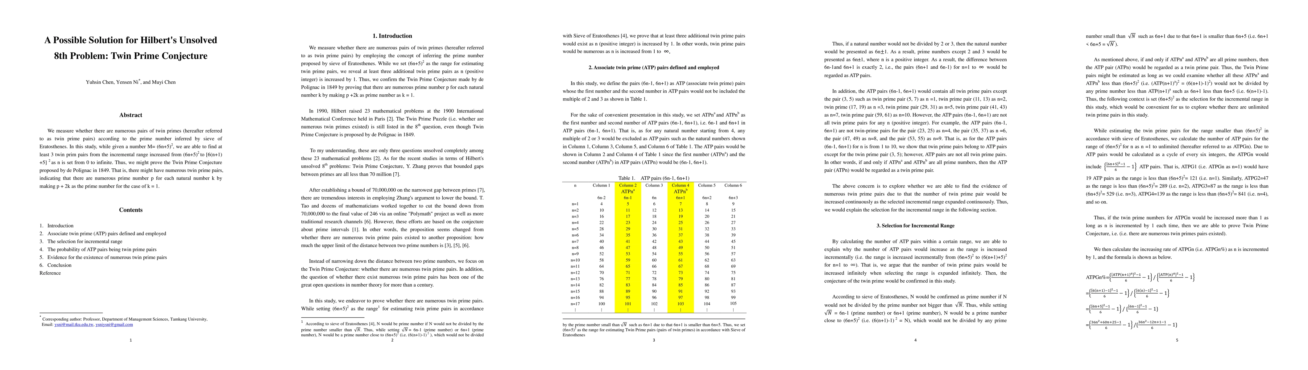 We measure whether there are numerous pairs of twin primes (hereafter referred to as twin prime pairs) according to the prime number inferred by sieve of Eratosthenes. In this study, we reveal at least three additional twin prime pairs increased as n is increased by 1, while setting (6n+5)**2 as the range for estimating twin prime pairs. As a result, we prove the Twin Prime Conjecture proposed by de Polignac in 1849. That is, there are numerous twin prime pairs, indicating that there are numerous prime number p for each natural number k by making p + 2k as prime number for the case of k = 1.