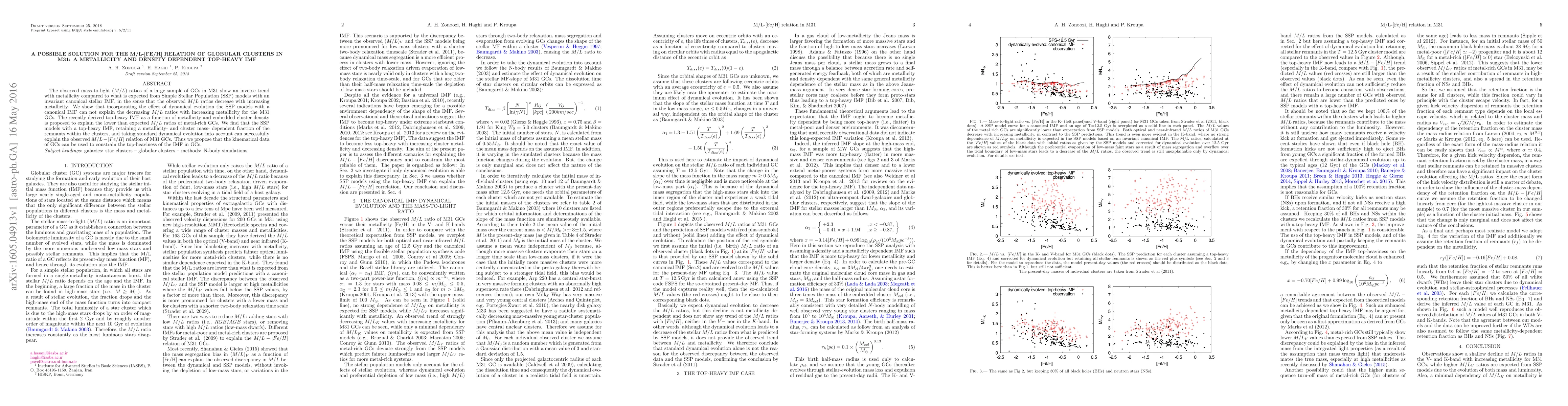 This paper proposes that a metallicity and density-dependent top-heavy Initial Mass Function (IMF) can explain the observed inverse trend between mass-to-light ratios and metallicity in M31 globular clusters, which cannot be accounted for by canonical stellar IMF models. The study suggests that incorporating this top-heavy IMF into Simple Stellar Population models can successfully match the observed $M/L-[Fe/H]$ relation.