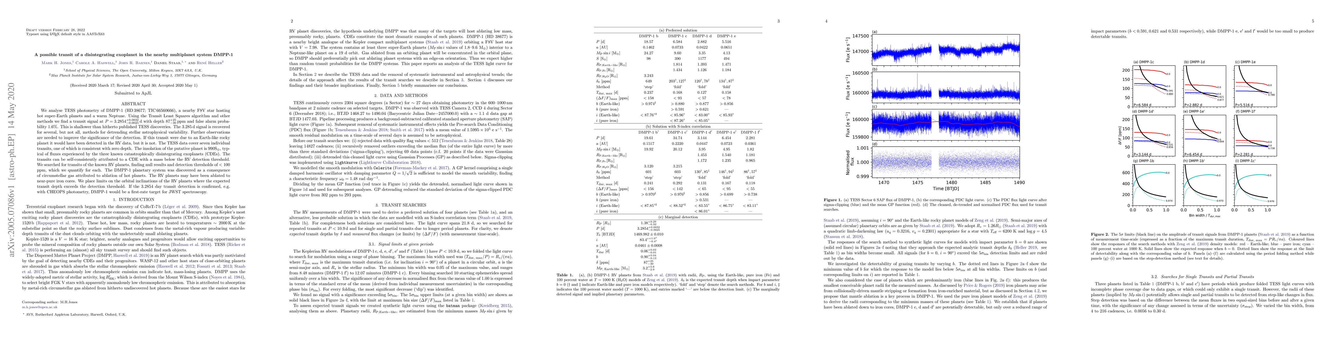 We analyse TESS photometry of DMPP-1 (HD 38677; TIC 66560666), a nearby F8V star hosting hot super-Earth planets and a warm Neptune. Using the Transit Least Squares algorithm and other methods we find a transit signal at $P=3.2854^{+0.0032}_{-0.0025}$ d with depth 87$^{+25}_{-30}$ ppm and false alarm probability 1.6%. This is shallower than hitherto published TESS discoveries. The 3.285 d signal is recovered for several, but not all, methods for detrending stellar astrophysical variability. Further observations are needed to improve the significance of the detection. If this transit were due to an Earth-like rocky planet it would have been detected in the RV data, but it is not. The TESS data cover seven individual transits, one of which is consistent with zero depth. The insolation of the putative planet is $990 {\rm S_{\oplus}}$, typical of fluxes experienced by the three known catastrophically disintegrating exoplanets (CDEs). The transits can be self-consistently attributed to a CDE with a mass below the RV detection threshold. We searched for transits of the known RV planets, finding null results and detection thresholds of $< 100$ ppm, which we quantify for each. The DMPP-1 planetary system was discovered as a consequence of circumstellar gas attributed to ablation of hot planets. The RV planets may have been ablated to near-pure iron cores. We place limits on the orbital inclinations of the RV planets where the expected transit depth exceeds the detection threshold. If the 3.2854 day transit detection is confirmed, e.g. with CHEOPS photometry, DMPP-1 would be a first-rate target for JWST spectroscopy.