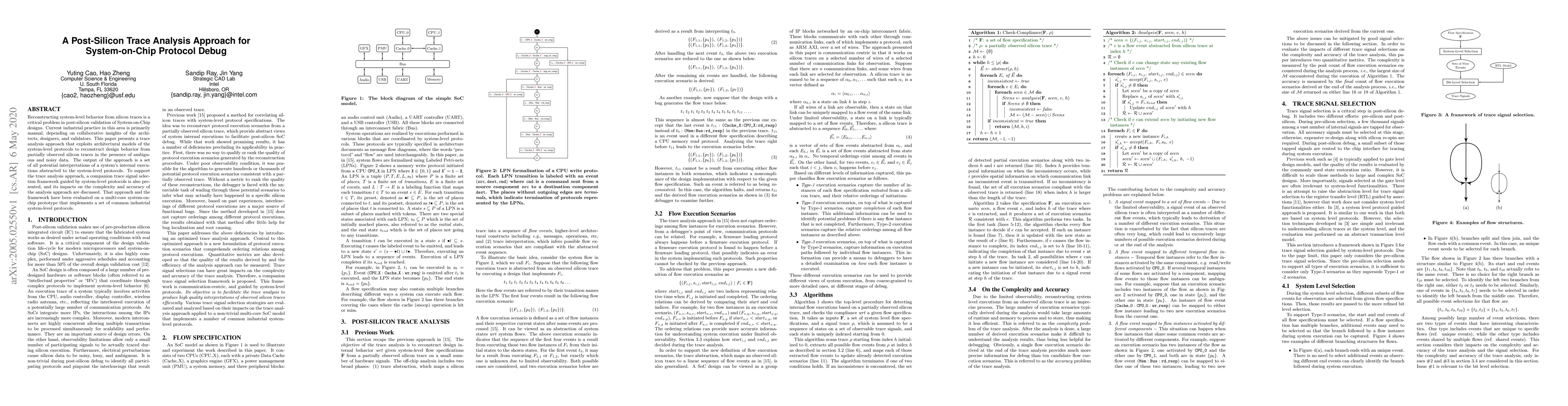 This paper introduces a new trace analysis method for post-silicon validation of System-on-Chip designs, leveraging architectural models to reconstruct system-level behavior from noisy silicon traces. It also presents a complementary trace signal selection framework to enhance analysis accuracy and complexity.