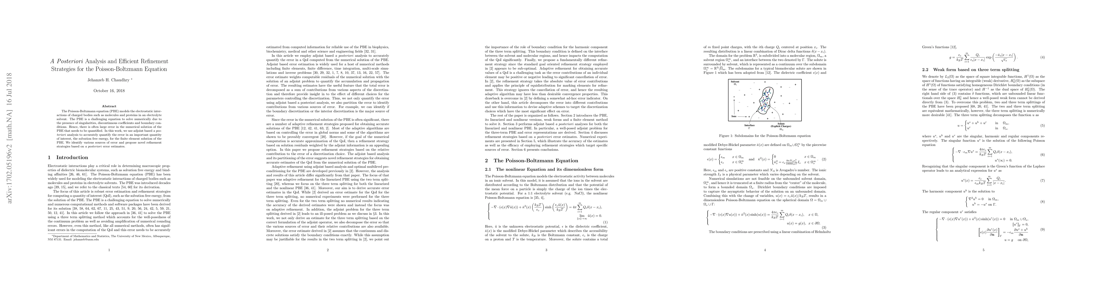 This paper employs adjoint-based a posteriori analysis to quantify the error in the finite element solution of the Poisson-Boltzmann equation, focusing on the solvation free energy. It identifies error sources and proposes efficient refinement strategies based on the a posteriori error estimates.