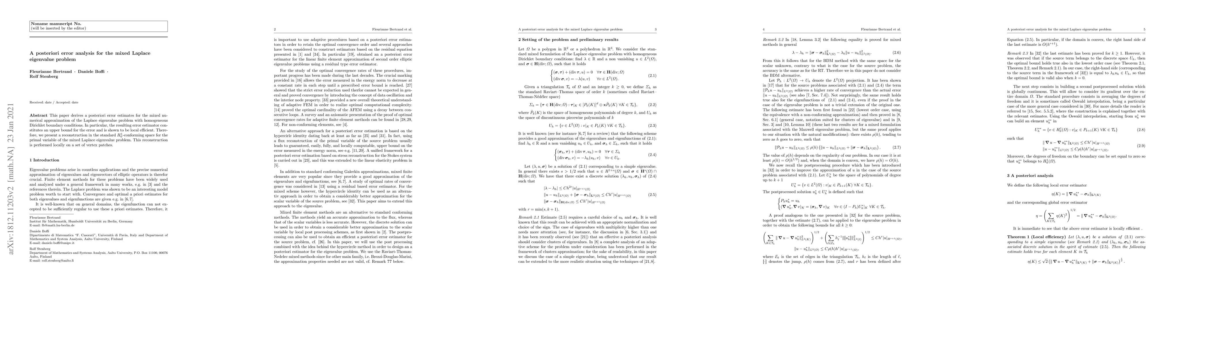 This paper develops a posteriori error estimates for mixed numerical methods applied to the Laplace eigenvalue problem, providing an upper bound that is locally efficient. It also introduces a reconstruction technique in $H^1_0$-conforming space for the primal variable, performed locally on vertex patches.