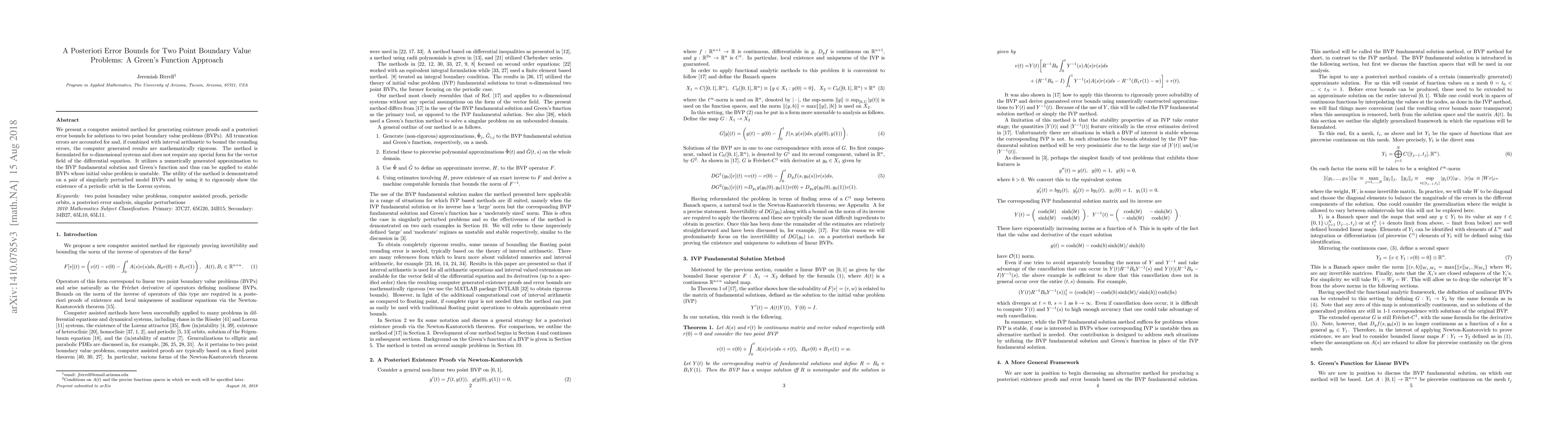 We present a computer assisted method for generating existence proofs and a posteriori error bounds for solutions to two point boundary value problems (BVPs). All truncation errors are accounted for and, if combined with interval arithmetic to bound the rounding errors, the computer generated results are mathematically rigorous. The method is formulated for $n$-dimensional systems and does not require any special form for the vector field of the differential equation. It utilizes a numerically generated approximation to the BVP fundamental solution and Green's function and thus can be applied to stable BVPs whose initial value problem is unstable. The utility of the method is demonstrated on a pair of singularly perturbed model BVPs and by using it to rigorously show the existence of a periodic orbit in the Lorenz system.