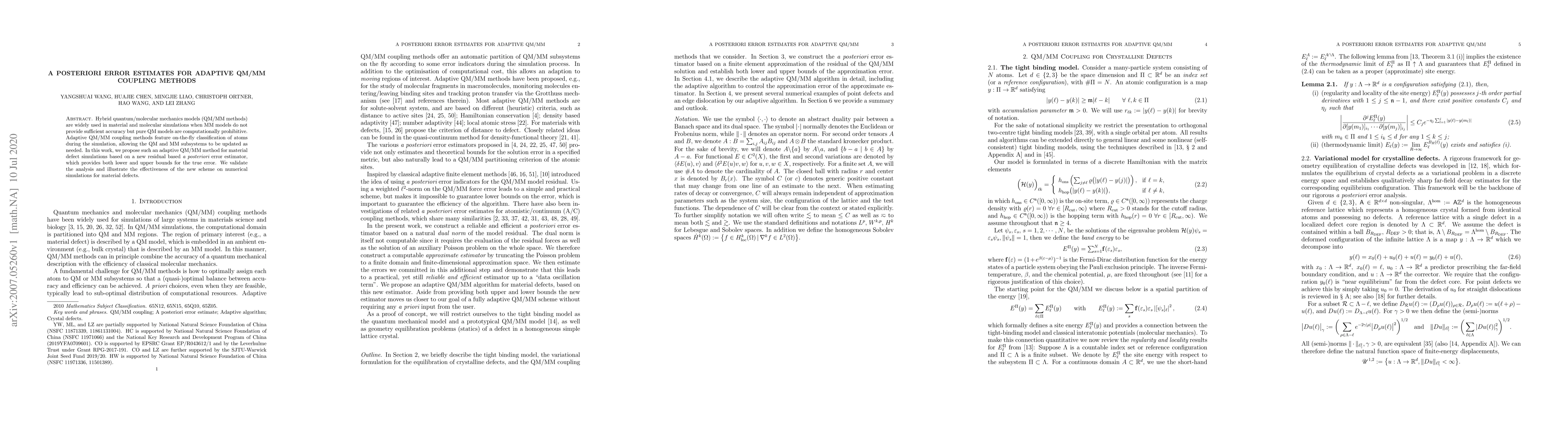 This paper proposes an adaptive QM/MM coupling method for material defect simulations using a new residual-based a posteriori error estimator that provides both lower and upper bounds for the true error. The method's effectiveness is validated through numerical simulations.