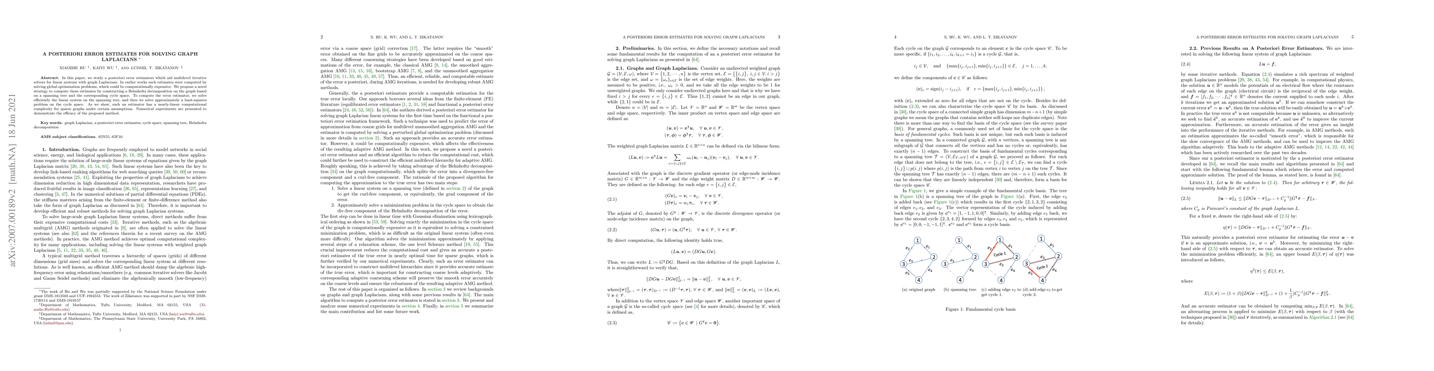 This paper proposes a new method for estimating errors in solving graph Laplacians, reducing computational complexity to nearly-linear time for sparse graphs.