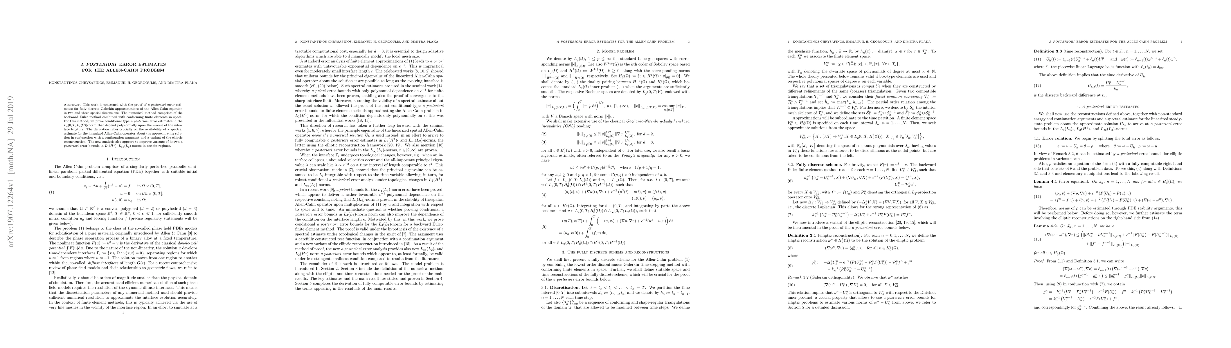 This work is concerned with the proof of \emph{a posteriori} error estimates for fully-discrete Galerkin approximations of the Allen-Cahn equation in two and three spatial dimensions. The numerical method comprises of the backward Euler method combined with conforming finite elements in space. For this method, we prove conditional type \emph{a posteriori} error estimates in the $L^{}_4(0,T;L^{}_4(\Omega))$-norm that depend polynomially upon the inverse of the interface length $\epsilon$. The derivation relies crucially on the availability of a spectral estimate for the linearized Allen-Cahn operator about the approximating solution in conjunction with a continuation argument and a variant of the elliptic reconstruction. The new analysis also appears to improve variants of known \emph{a posteriori} error bounds in $L_2(H^1)$, $L_\infty^{}(L_2^{})$-norms in certain regimes.