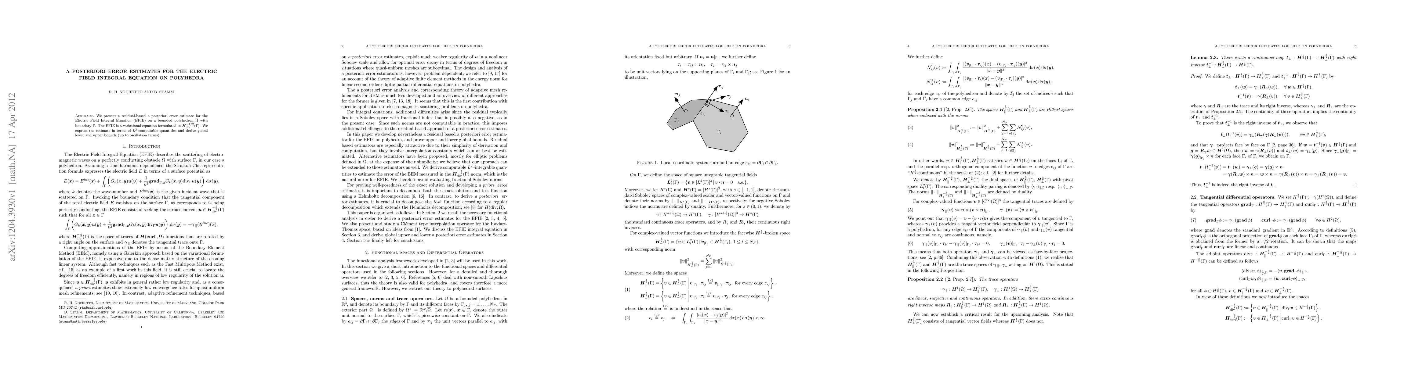 The paper introduces a residual-based a posteriori error estimate for the Electric Field Integral Equation (EFIE) on polyhedra, providing computable quantities and deriving global bounds for the error. The EFIE is analyzed in a negative order Sobolev space on the polyhedron surface.