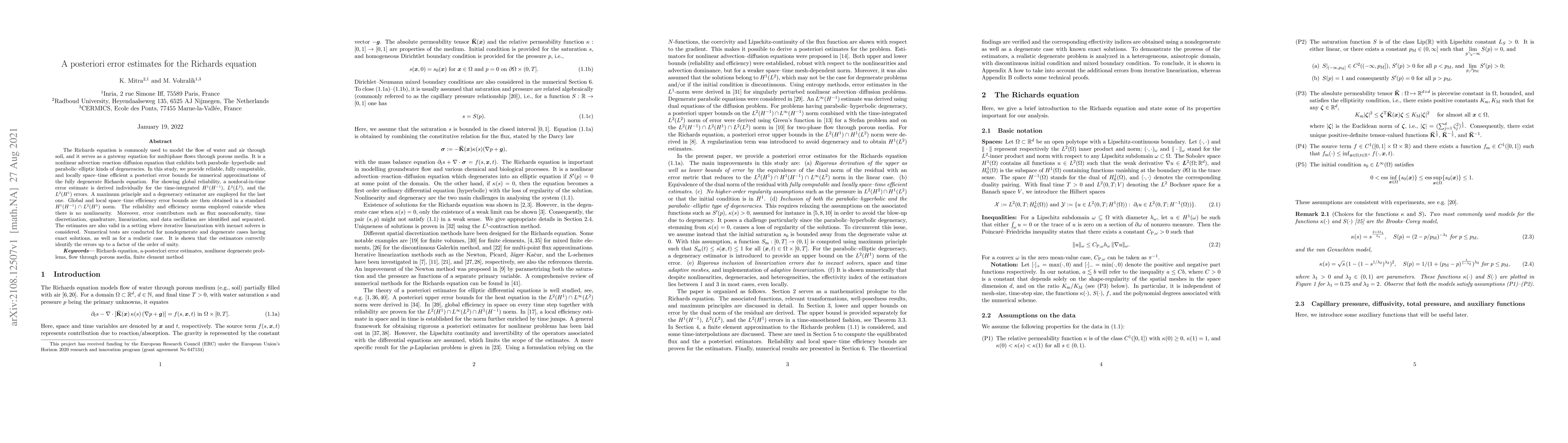 This paper develops reliable and computable a posteriori error estimates for numerical approximations of the Richards equation, which models water and air flow through soil. The estimates are shown to be globally reliable and locally space-time efficient, identifying and separating various error contributors, and are validated through numerical tests.
